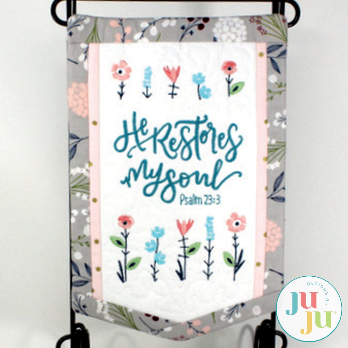 Decorate your home with this beautiful inspirational banner. A great gift for those that hurt or are going through hardships. The background is stipple quilted in the hoop and the various border strips are applied during the in the hoop process. There is a "sleeve" in the back for hanging the quilt. The sleeve is applied during the embroidery. No additional hand or sewing machine stitching required.