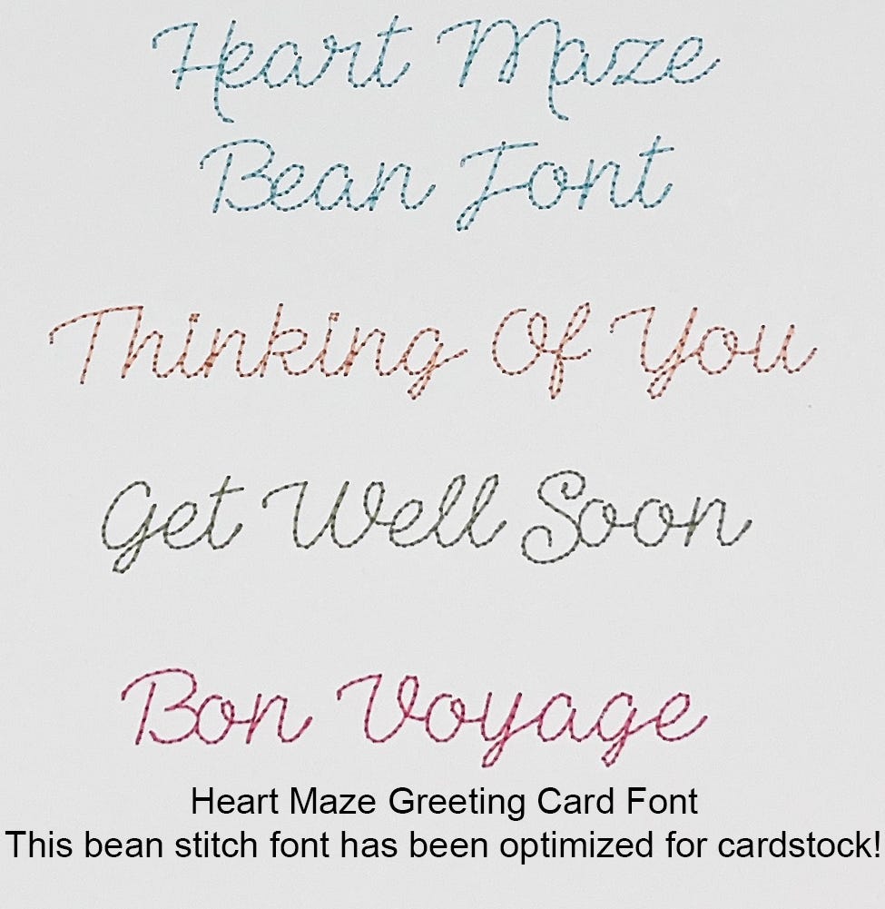 Add a personal touch to our greeting card designs with this triple-bean stitch font! It has been optimized for stitching on watercolor paper (half-inch size is shown).