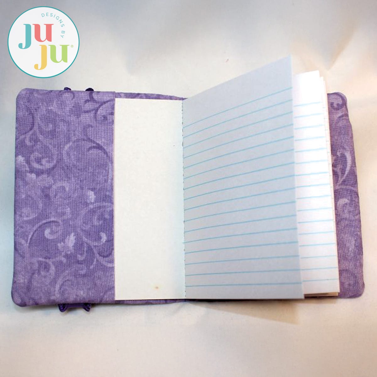 This notebook cover is designed to hold small composition notebooks (4.5x3.25" or A7). The design takes an ordinary little notebook and makes it a special gift. These notebooks are available in the US at stores like WalMart and the Dollar Tree.
