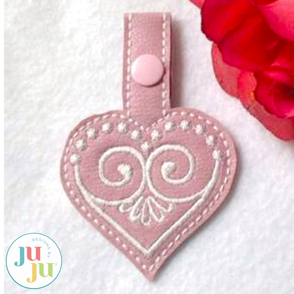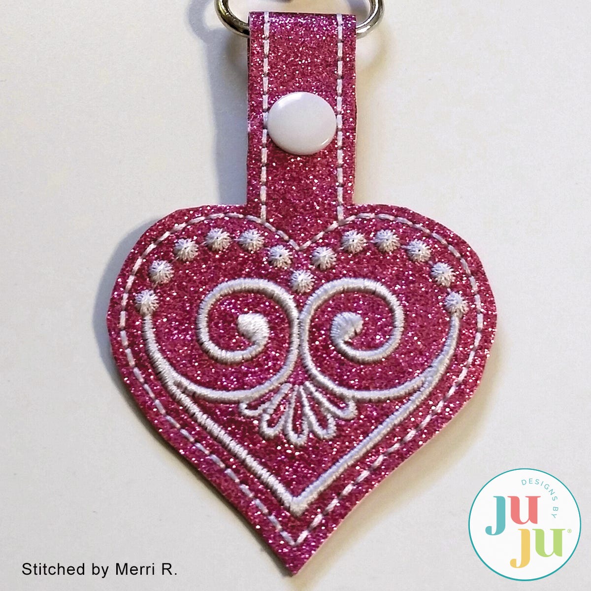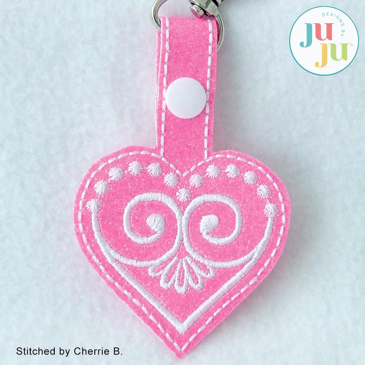 What a fun design and it's so quick to stitch! These make great anytime gifts. Perfect as a small Valentine's gift, too. Use as a key fob or attach to book bags. I am sure you can think of other uses as well. Comes with the curly motif as well as plain so you could place initials or wording of your own choosing. The plain one has no wording. Font is not included.