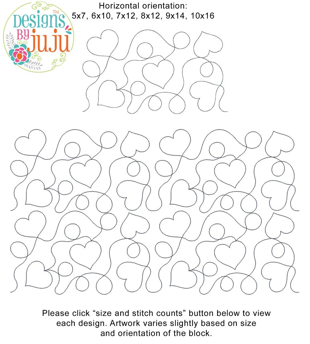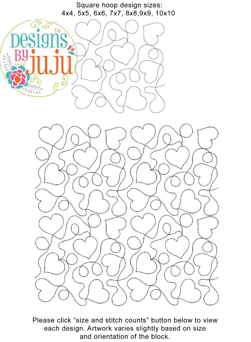 Please note: Both the scale of each pattern and arrangement of the motifs may vary based on the hoop size. Please click the "Size and Stitch Count" button to view the artwork for each size.