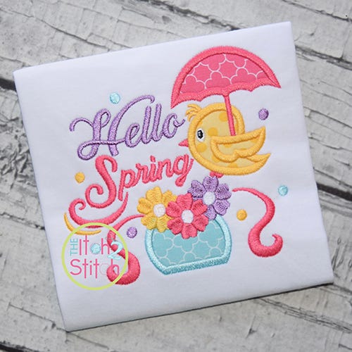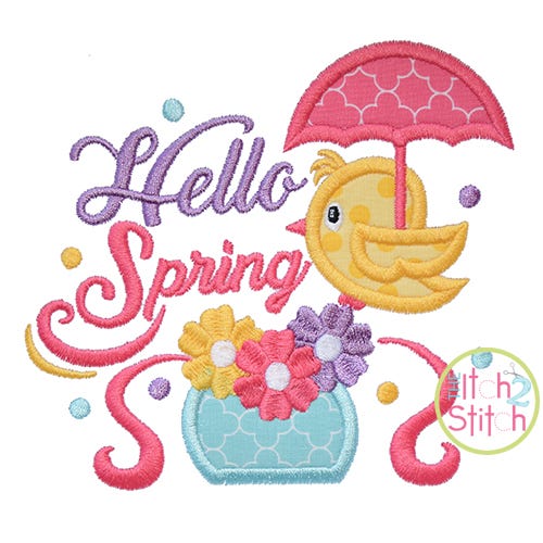 Say Hello to Spring in stitches with this adorable applique design! Text is included in the design file.