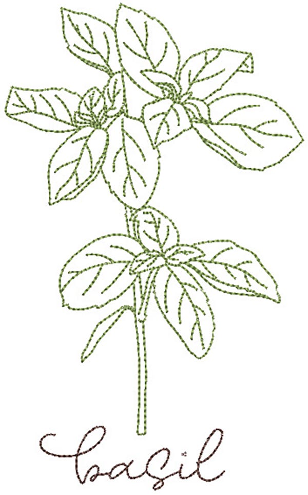 6 simple and lovely herbal redwork designs! These designs are embroidery-only with triple bean stitch line art and lettering.