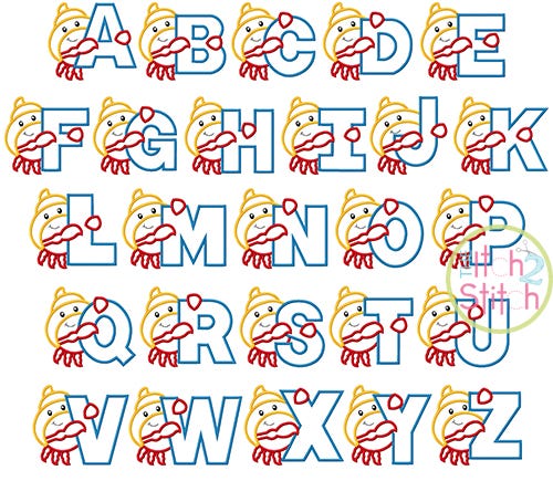 You will receive all letters A-Z (26 files) in two sizes (5" and 6" in height). Shown personalized with our "As the Deer", "Cutsie Joe", "Tuesday" and "Carried Away" fonts, sold separately