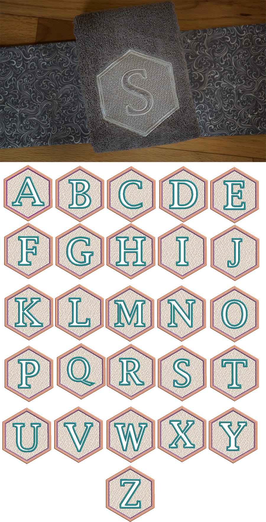 Designs by JuJu Exclusive! How beautiful is this hexagon shaped embossed alphabet? SO versatile! Elegant for couples for wedding gifts, masculine enough for the men who don't like the frilly. Send your kid off to college in style..even they will love this!Ā