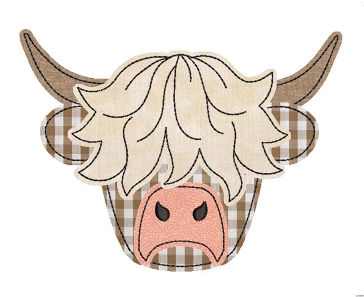 This sweet Highland Cow is perfect for vintage projects. This single is a bean stitch applique design.