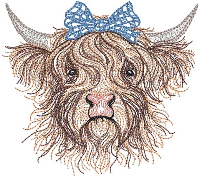 This sweet Highland Cow Girl, decked out with a plaid bow, is perfect for vintage projects. This single is a bean stitch