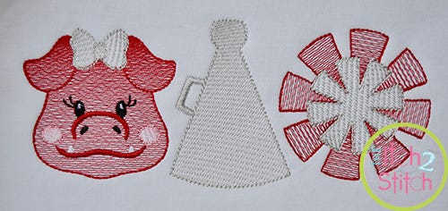 The light and airy "sketch" fill pattern allows for a quick stitch out. The space between each line of stitching varies such that it is more dense at one side of the shape than the other to create the shading effect. We do NOT recommend resizing designs with sketch elements in software.