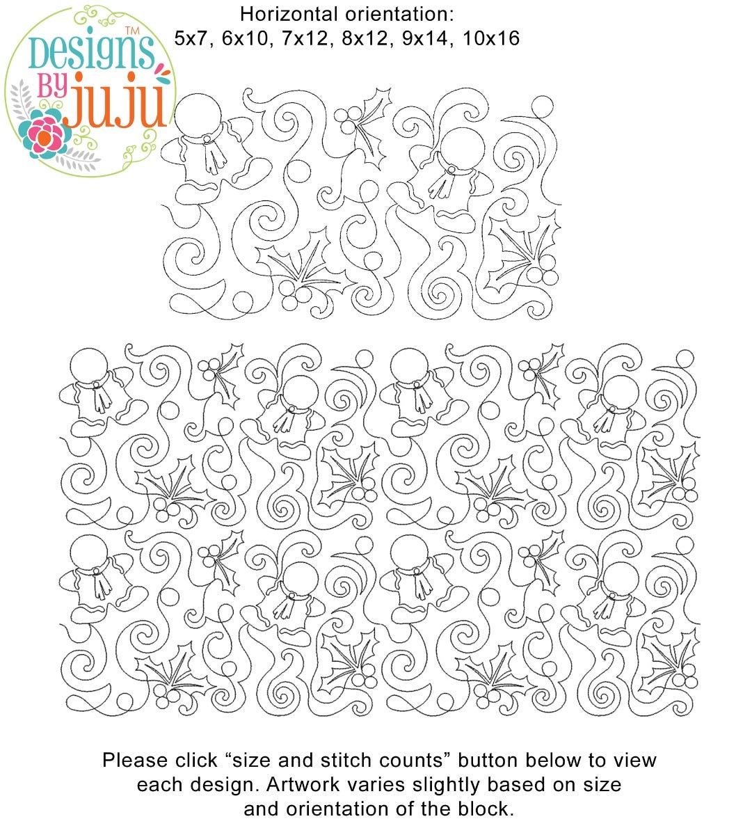 Please note: Both the scale of each pattern and arrangement of the motifs may vary based on the hoop size. Please click the "Size and Stitch Count" button to view the artwork for each size.
