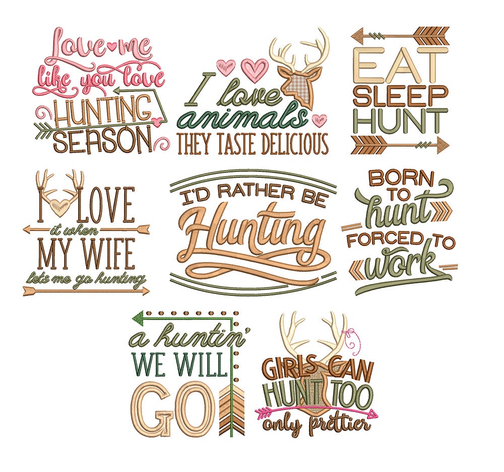 *Please note that the following designs contain applique components: I love animals they taste delicious / Girls can hunt too only prettier /