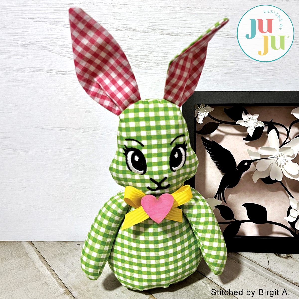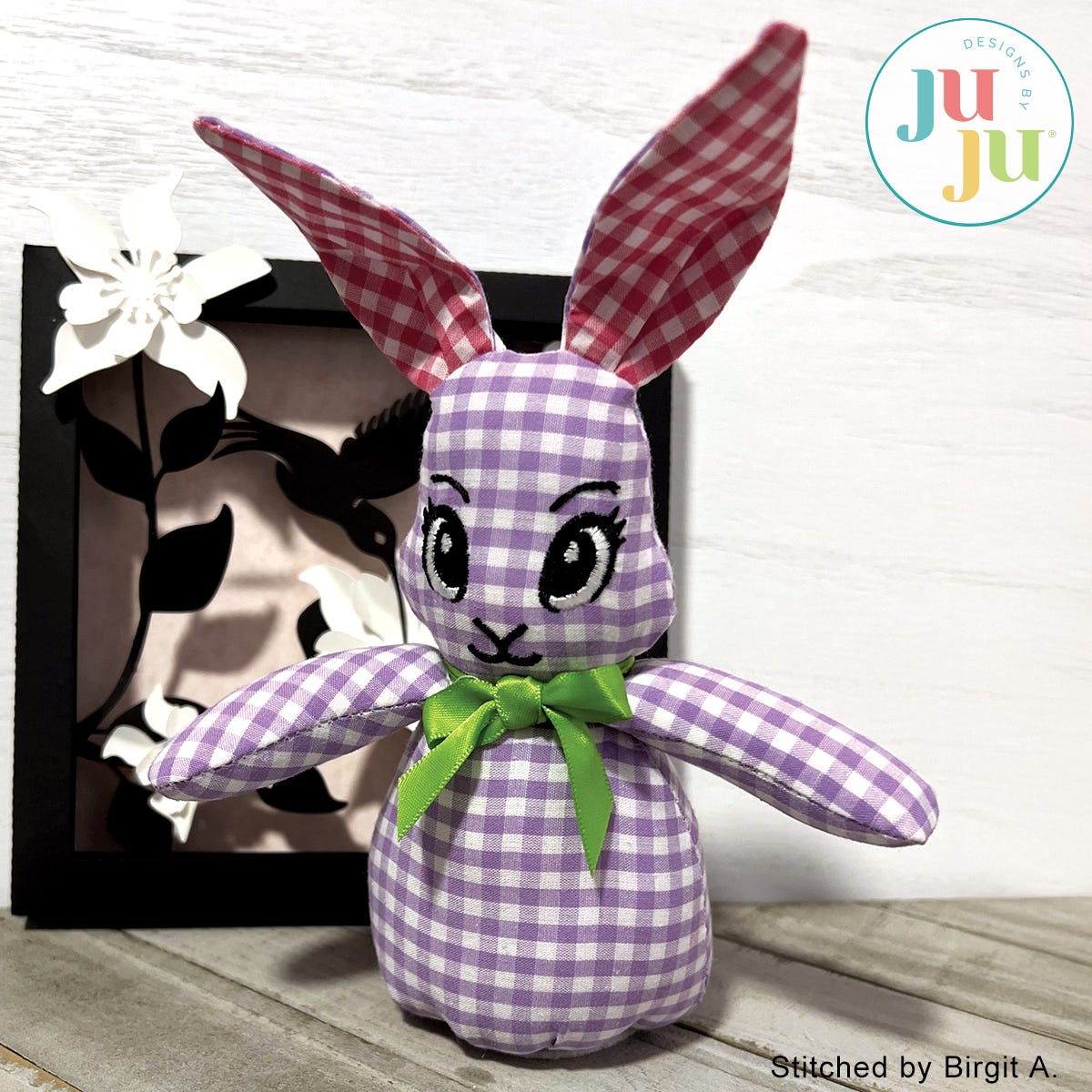 This project is mostly done in the hoop. Just a small amount of handstitching (basting stitches) is required. So much fun to use as home or table decor. Stitchout is very fast. The ears are inserted during the embroidery process; the arms are attached with glue. Decorate to your heart’s content. Intended for home decoration; not intended as a toy for small children.