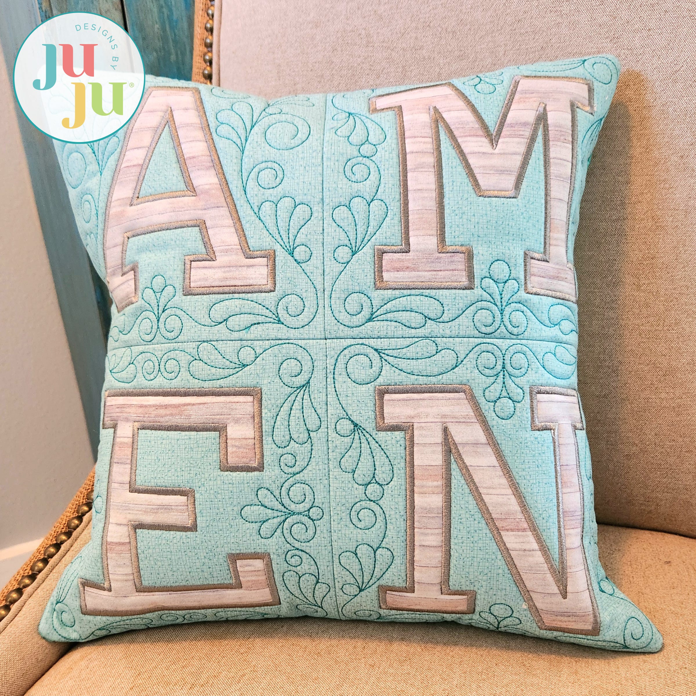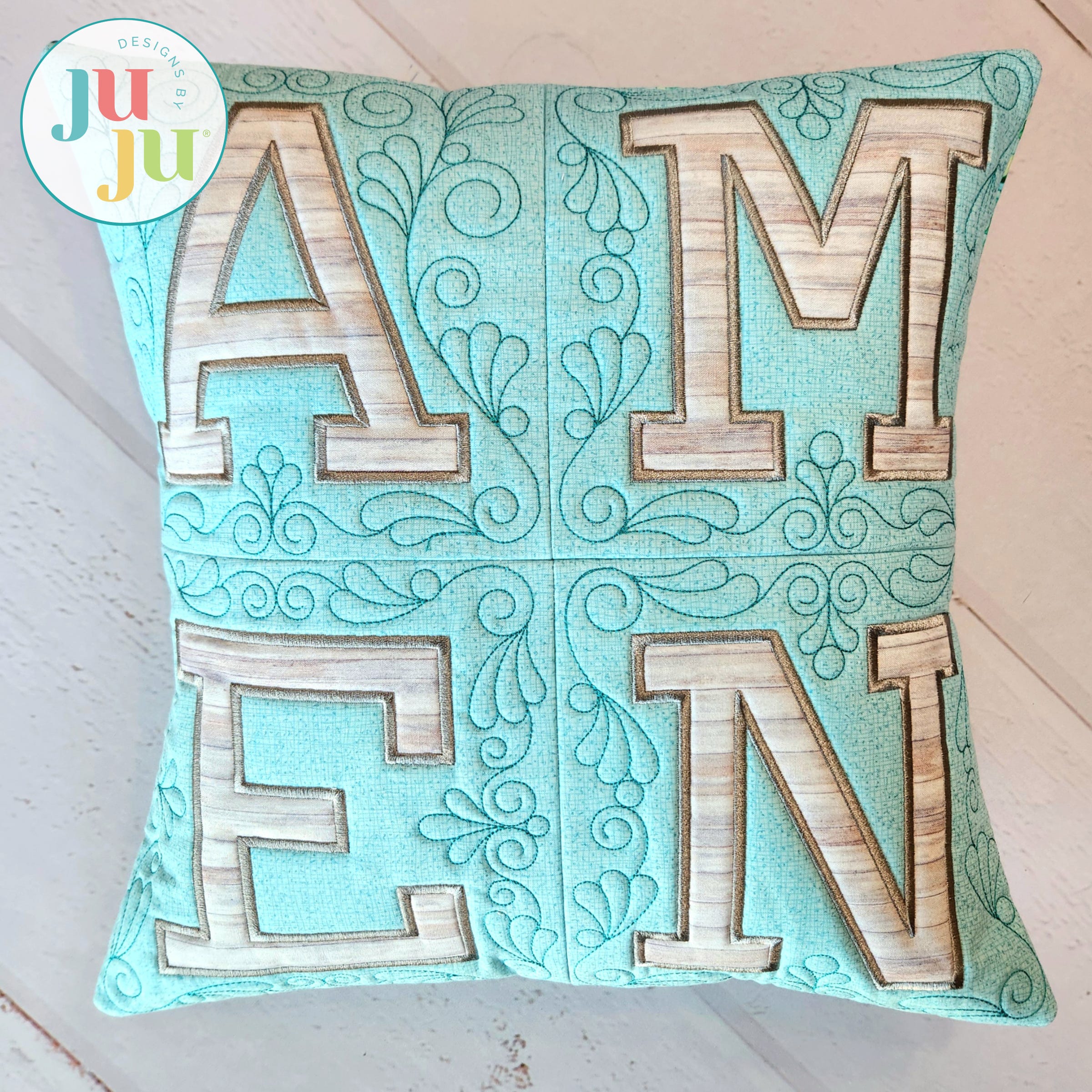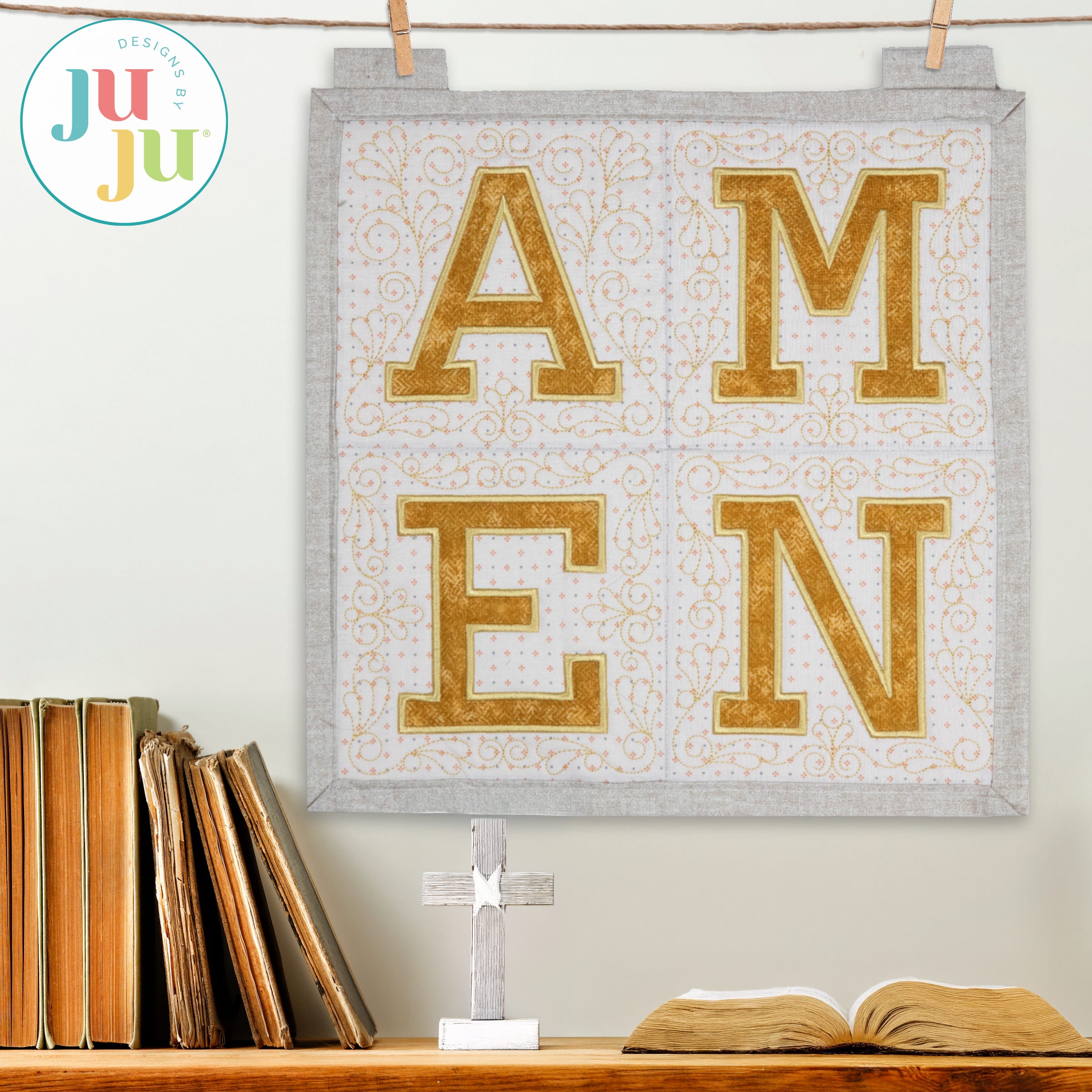 Add a touch of grace and affirmation to your home with this beautifully crafted AMEN Wall Hanging. This project has four blocks; each applique letter is surrounded by lovely bean stitch swirls.