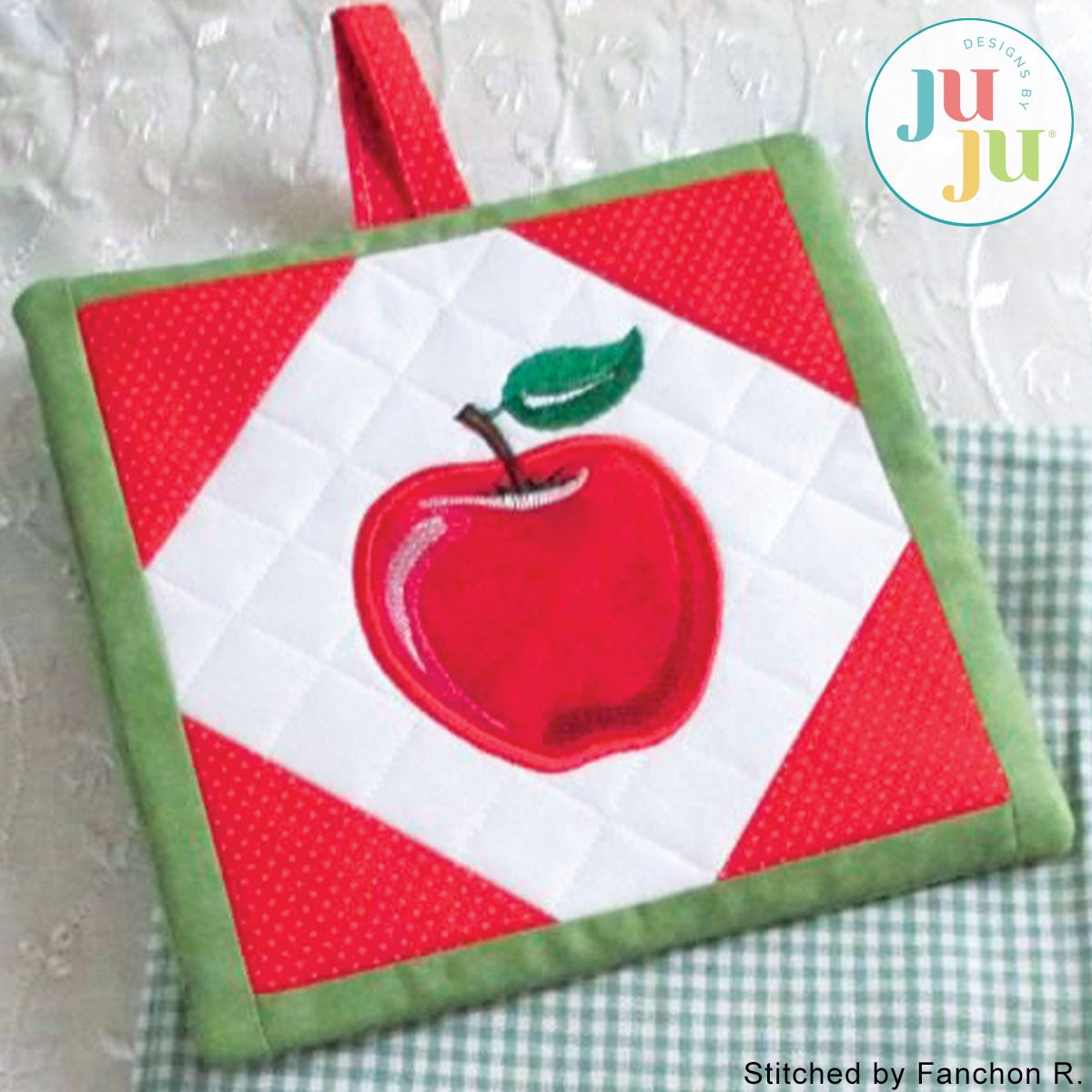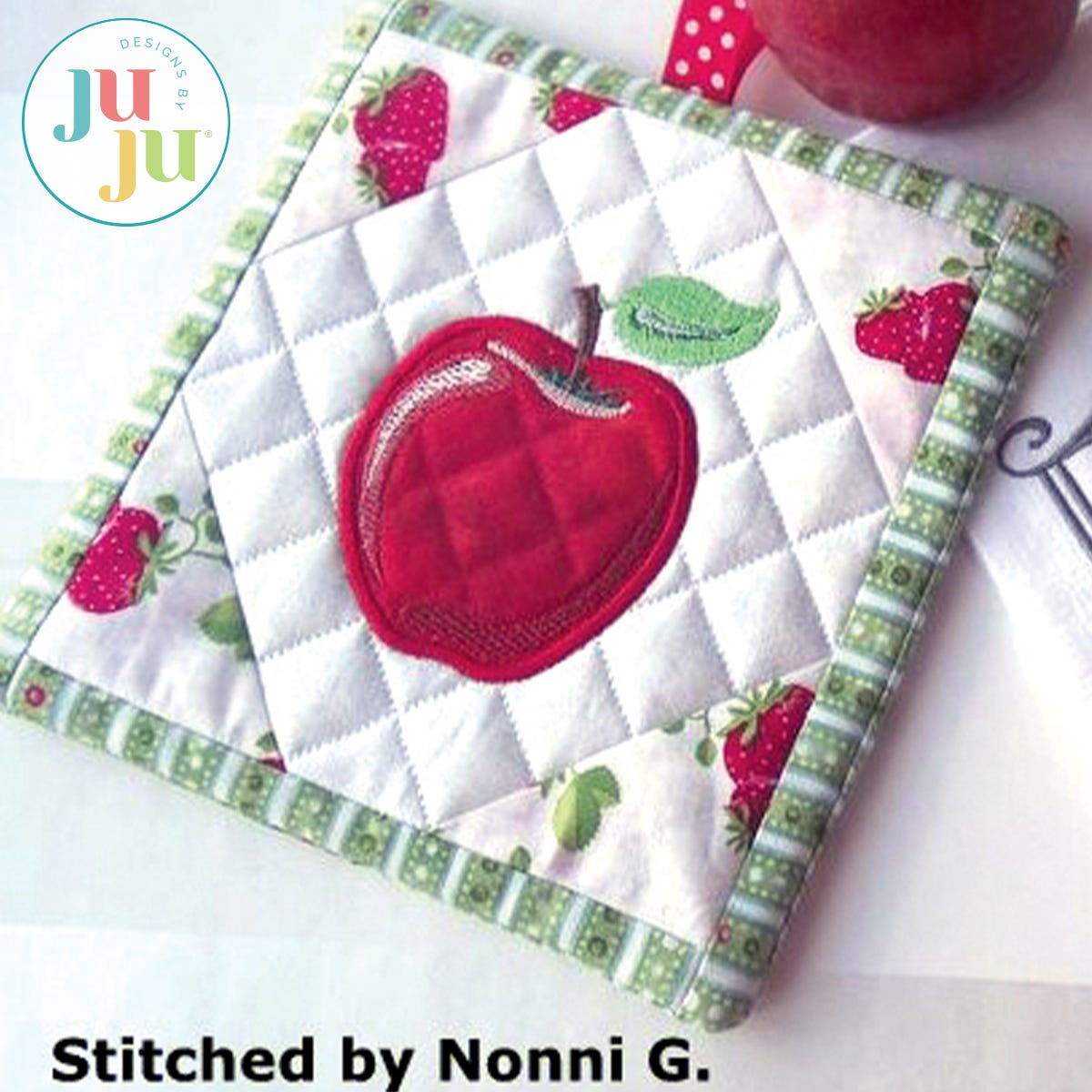 Also included in your zip is a plain potholder, without the center design, for you to showcase a special fabric or insert a design of your own choosing. There are a total of 4 stitchfiles in your download. No hand or machine sewing required.