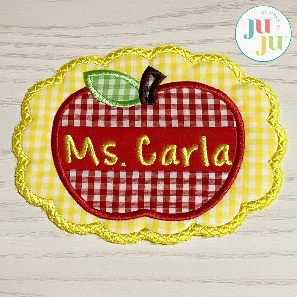 Idea: personalize the center fabric with a name or school subject using the font of your choice. "Ms. Carla" sample features our Feeling 22 embroidery font, sold separately.