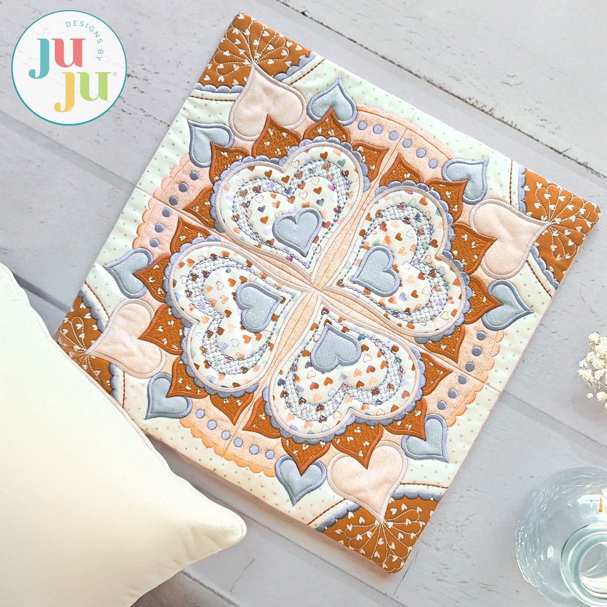 Introducing our Bella Pillow! Create a lovely heart themed mandala pillow cover with the fabrics of your choice.