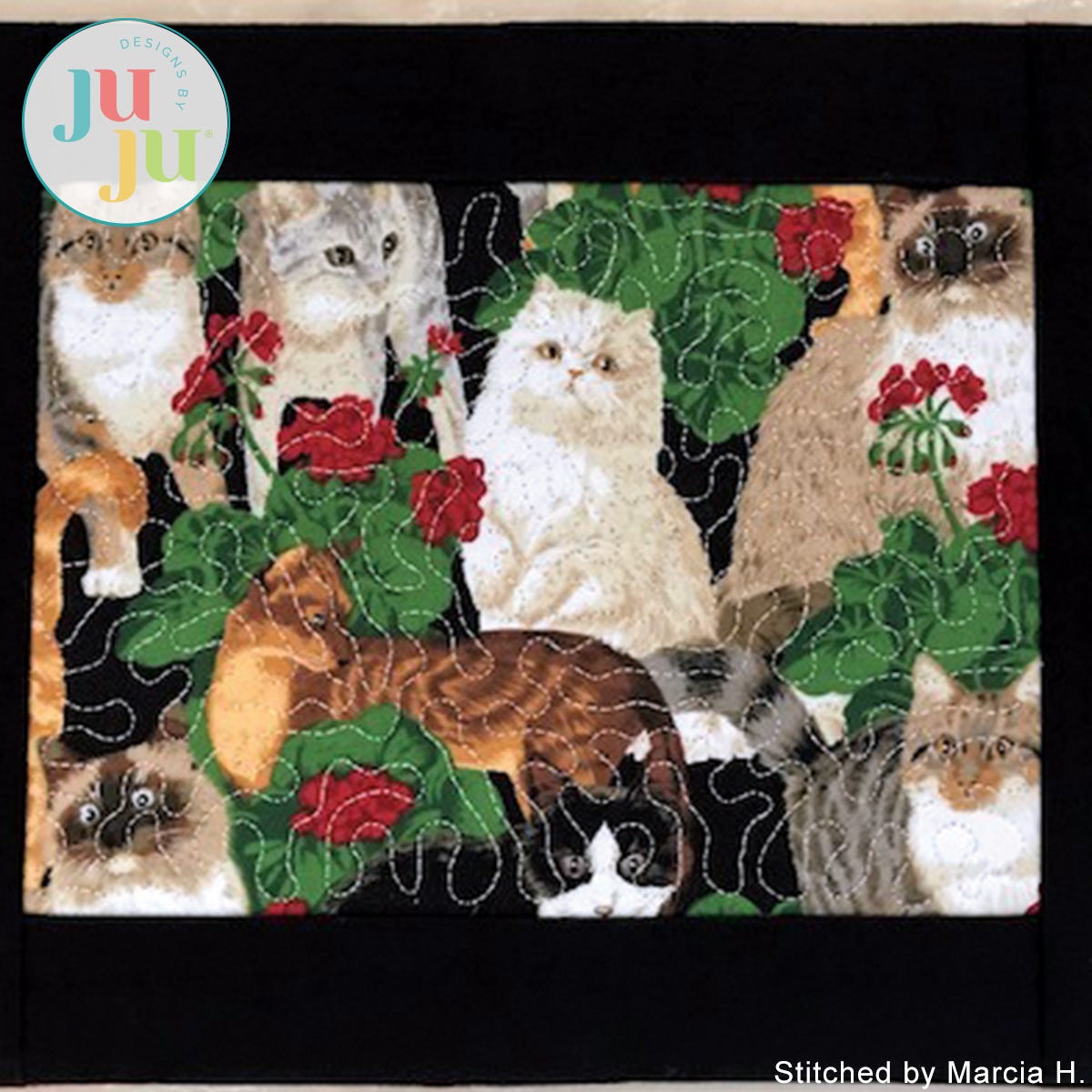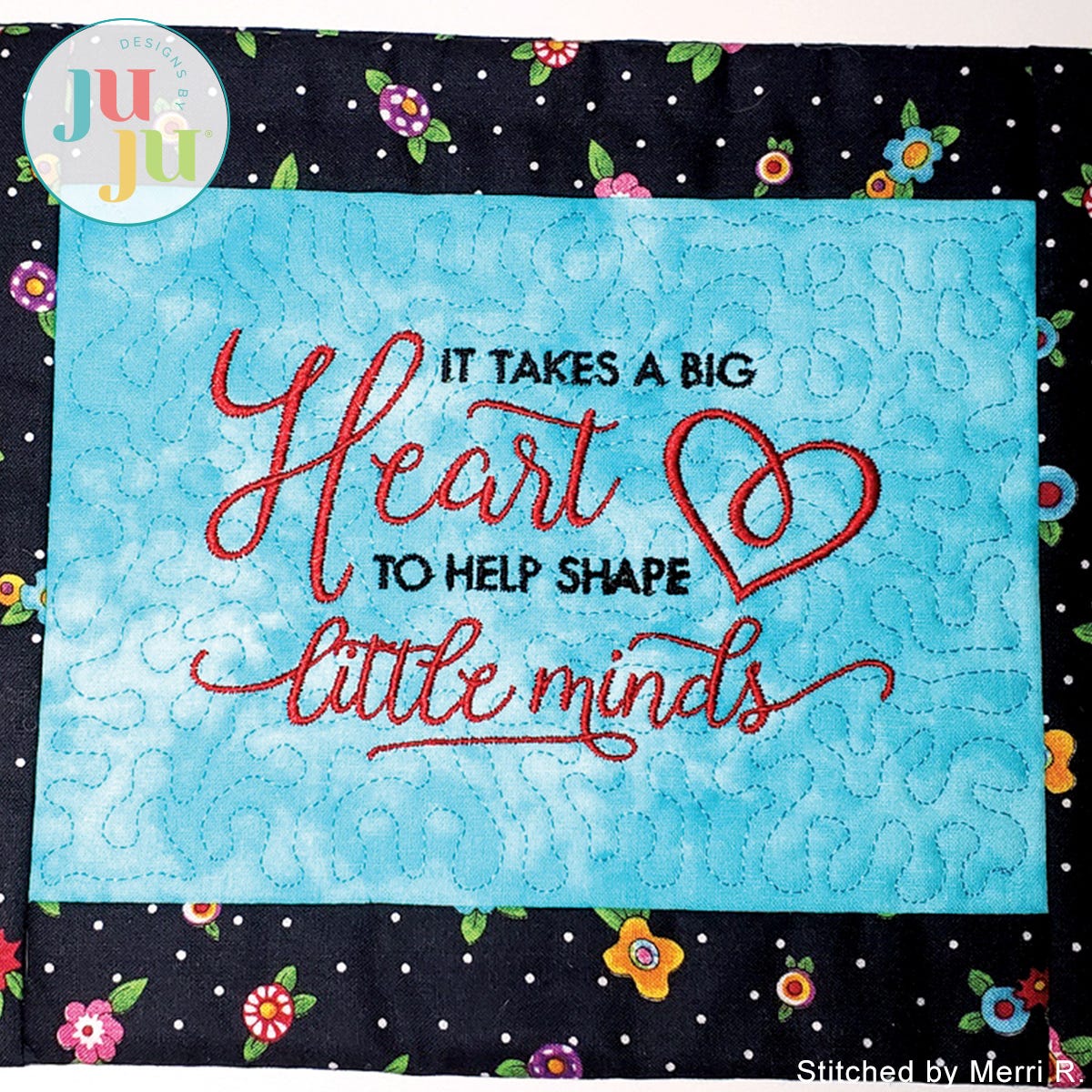 There are 2 stitch files in your download: One with the stipple quilting and wording; another one with the stippling but no wording. The latter version would be great for showcasing favorite fabrics — for any occasion and holiday.