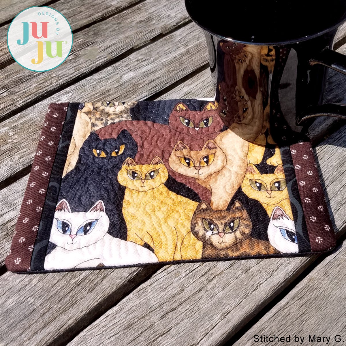 The mug rugs are completely stitched as an in the hoop project. There is no other sewing machine or hand stitching required.