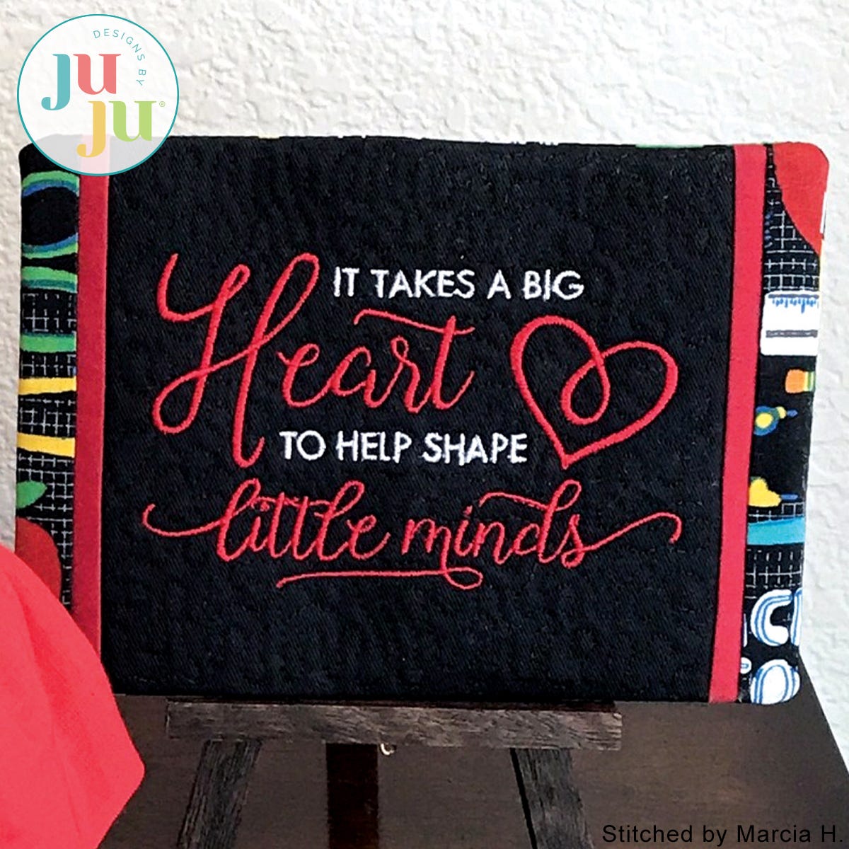 There are 2 stitch files in your download: One with the stipple quilting and wording; another one with the stippling but no wording. The latter version would be great for showcasing favorite fabrics — for any occasion and holiday.