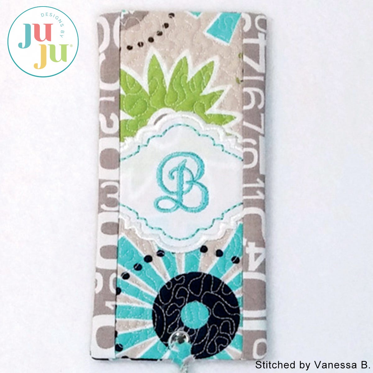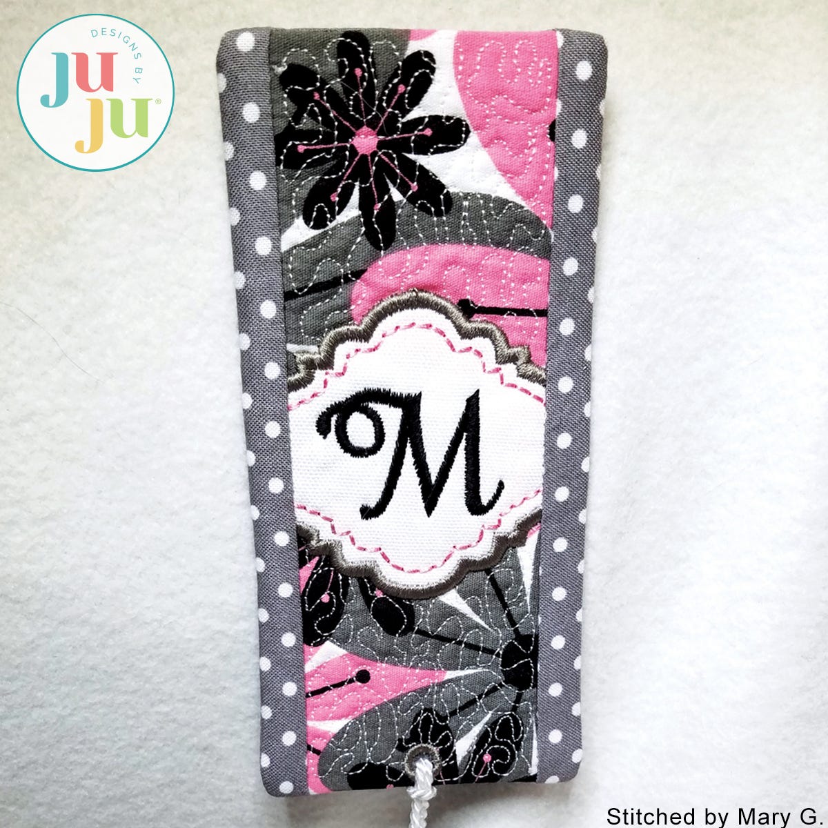 This bookmark for the 5x7 hoops coordinates with our journal covers for 6x8" journals. It is completed in the hoop and requires no further hand or sewing machine stitching.