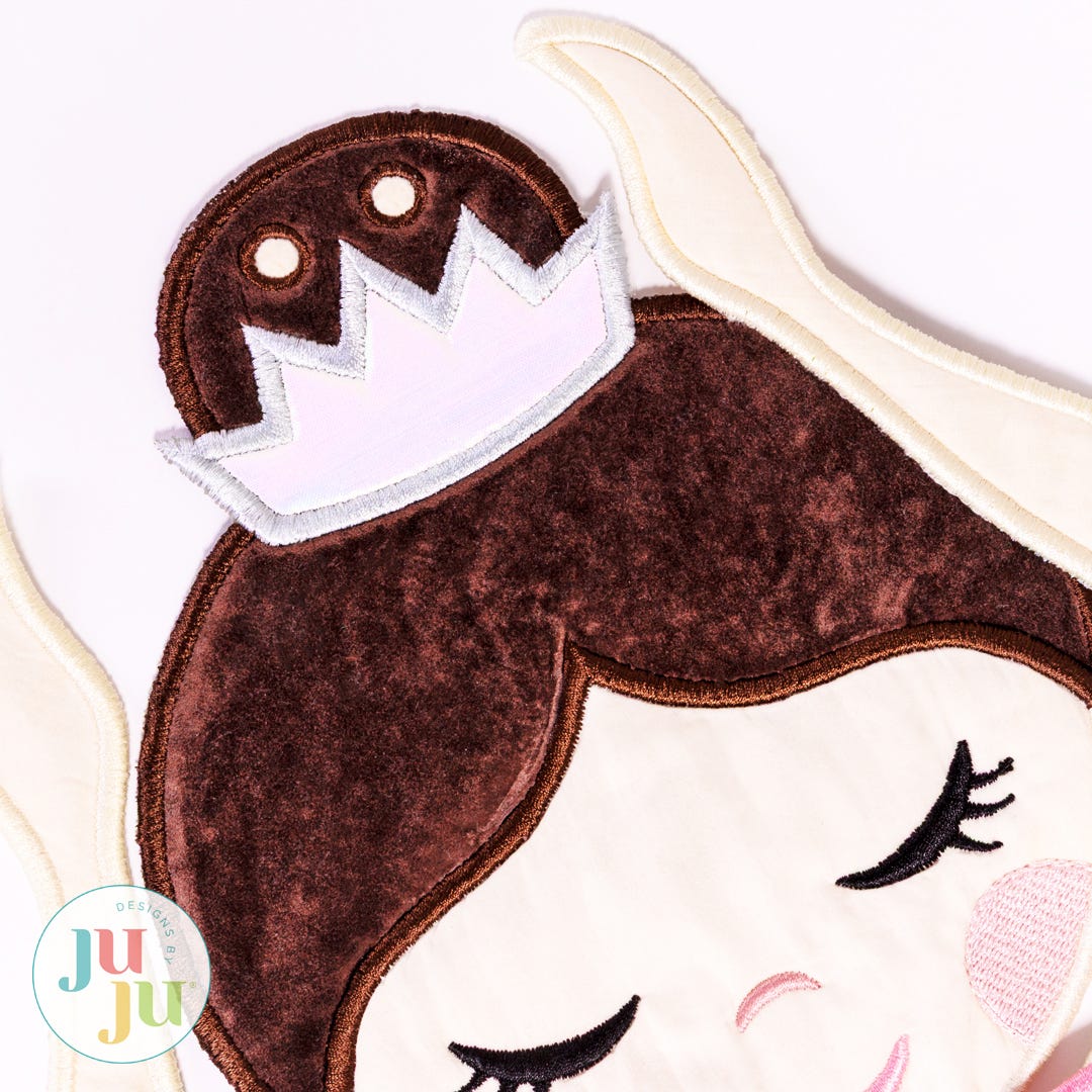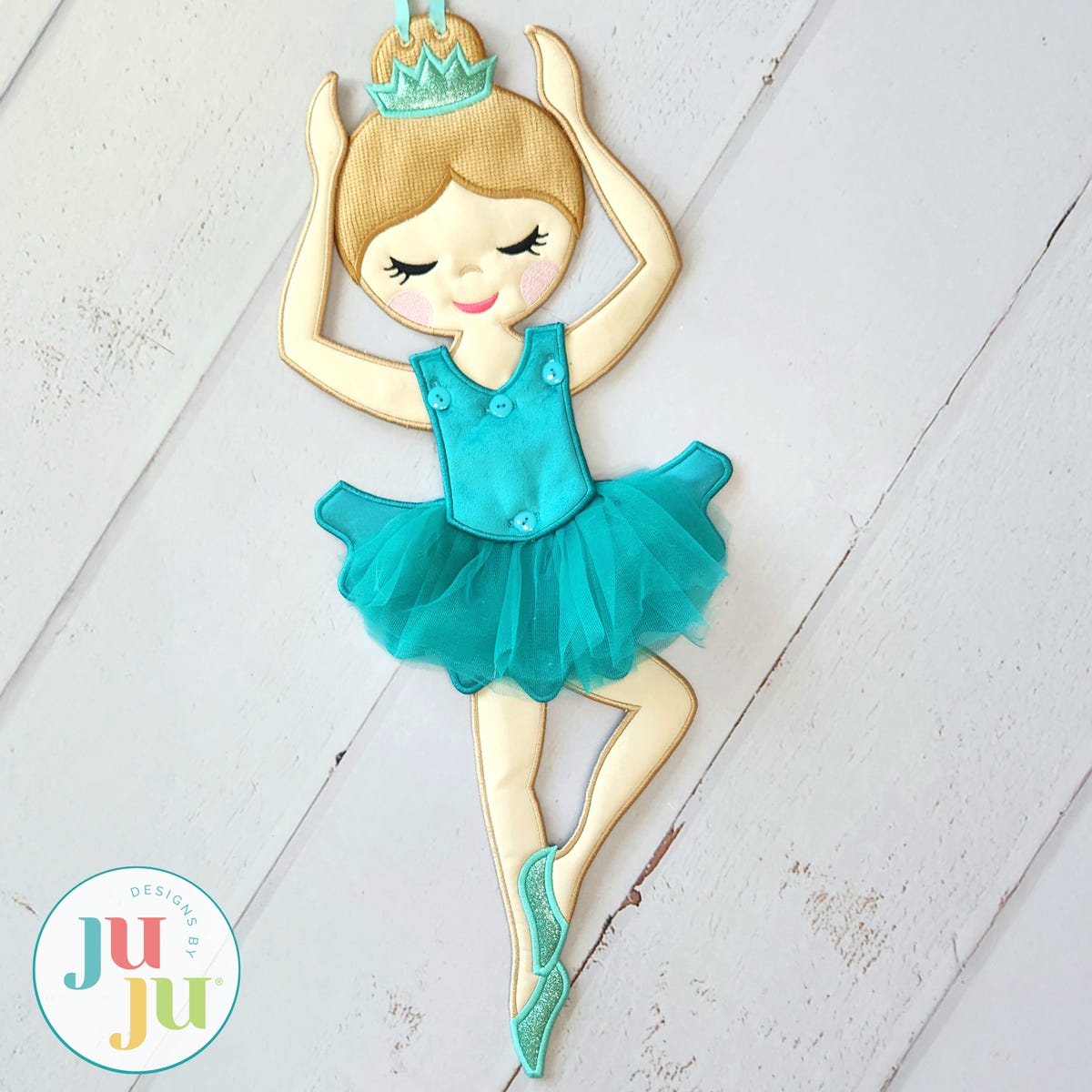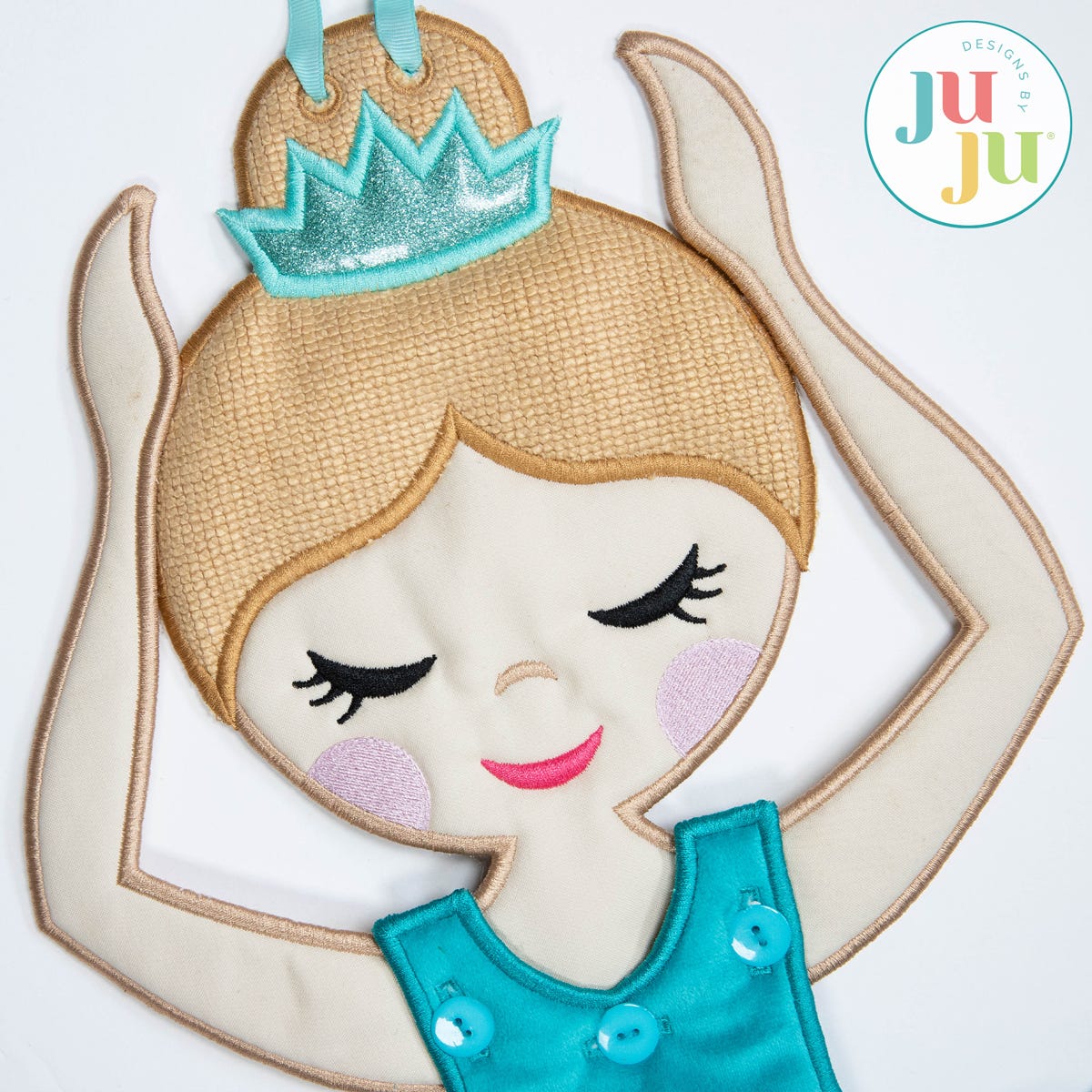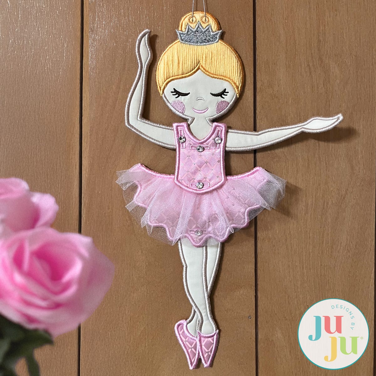 Create a one-of-a-kind Ballerina Wall Hanging with this customizable in-the-hoop project, perfect for decorating a child’s room, dance studio, or play space! This charming design buttons together to form a full wall hanging.