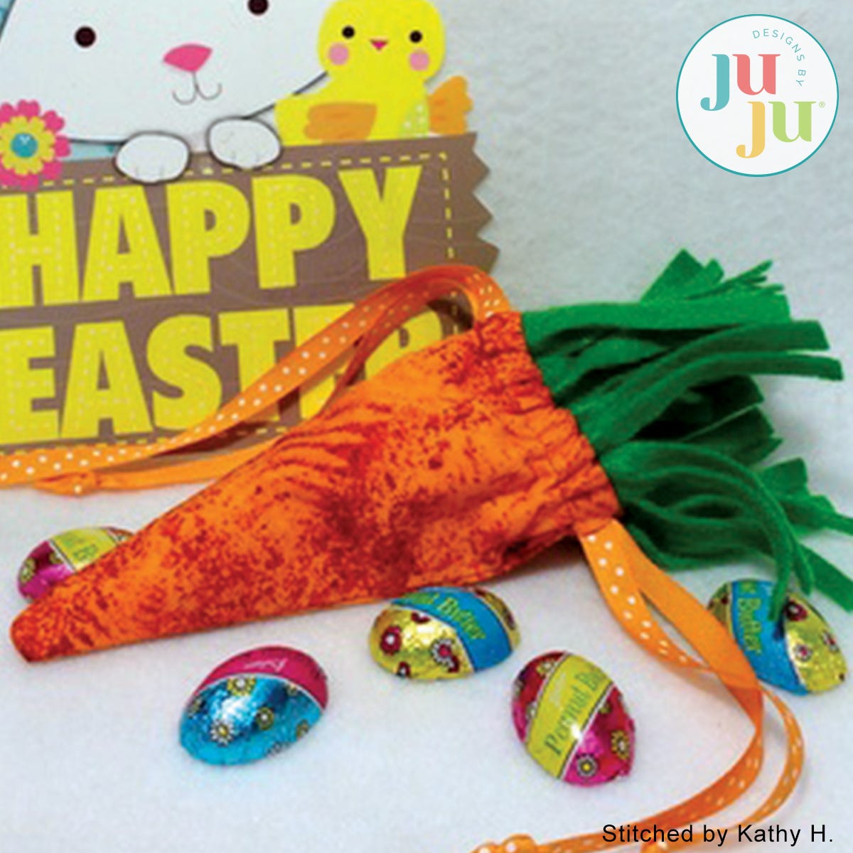 This year, make a few carrot shaped bags to hide the chocolate Easter eggs and jelly beans. Great little Easter gifts for teachers and co-workers, too. Insert an initial or one of our Spring miniature designs.