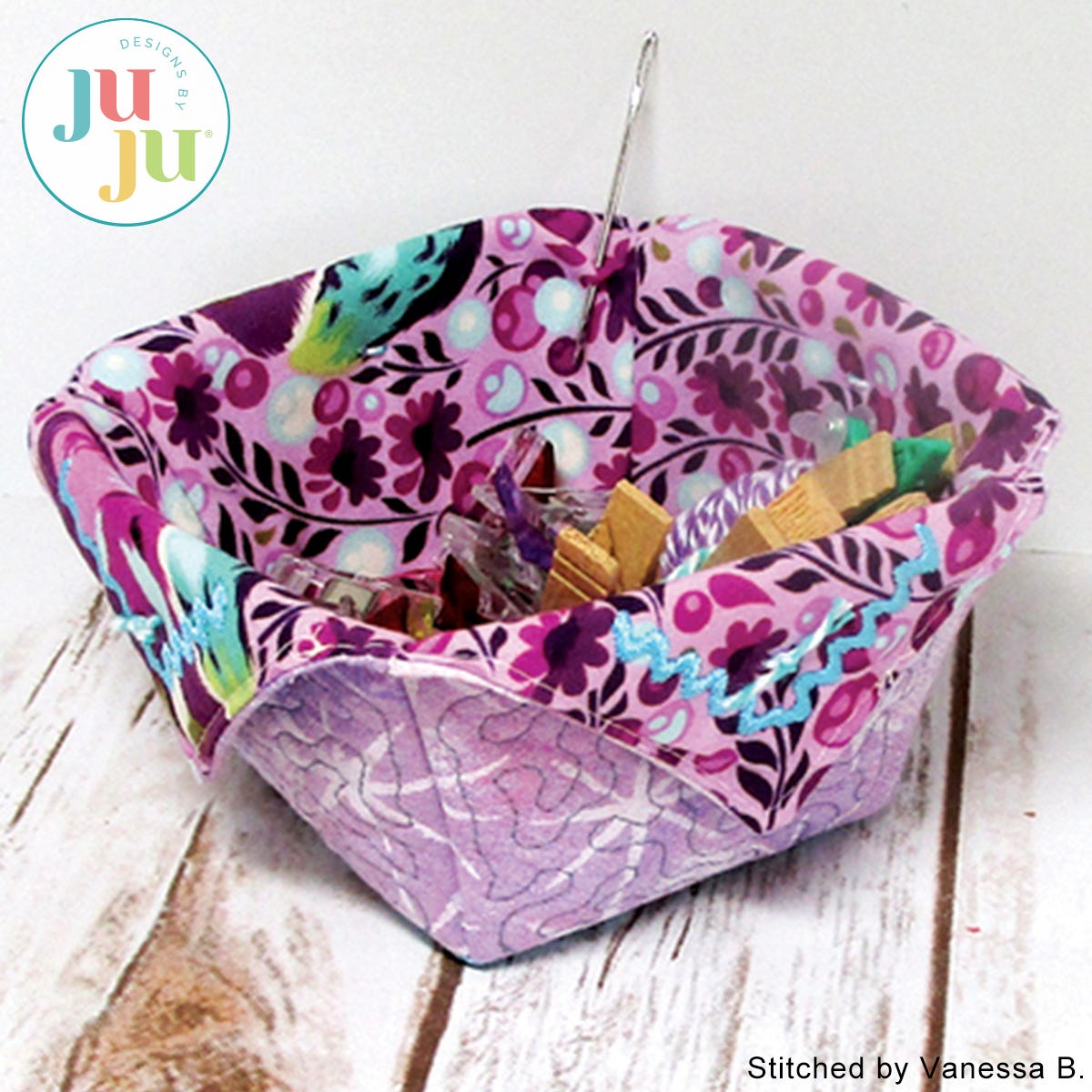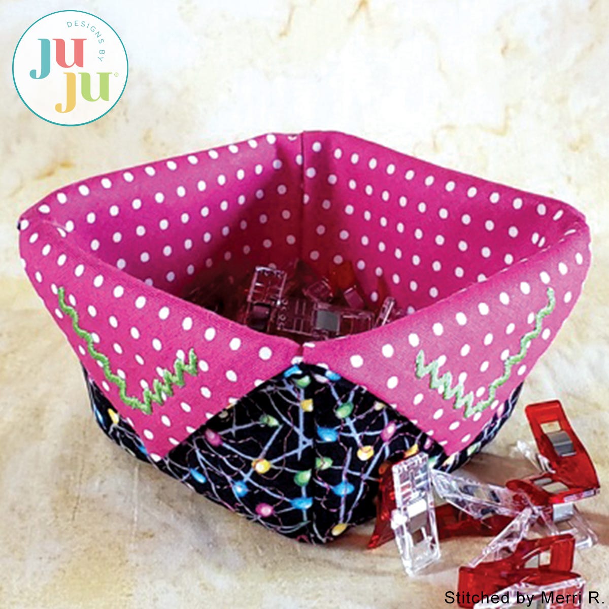 This adorable small catch-all can be used for so many purposes. Great for holding buttons, mini clips, thread clippings, snaps etc. But don't stop at the sewing room. This design would make a great little Easter basket, fill one with chocolates as a small gift for Valentine's, keep one in the kitchen to hold packets of sweeteners. Can’t you just see them made out of holiday fabrics and filled with candy?