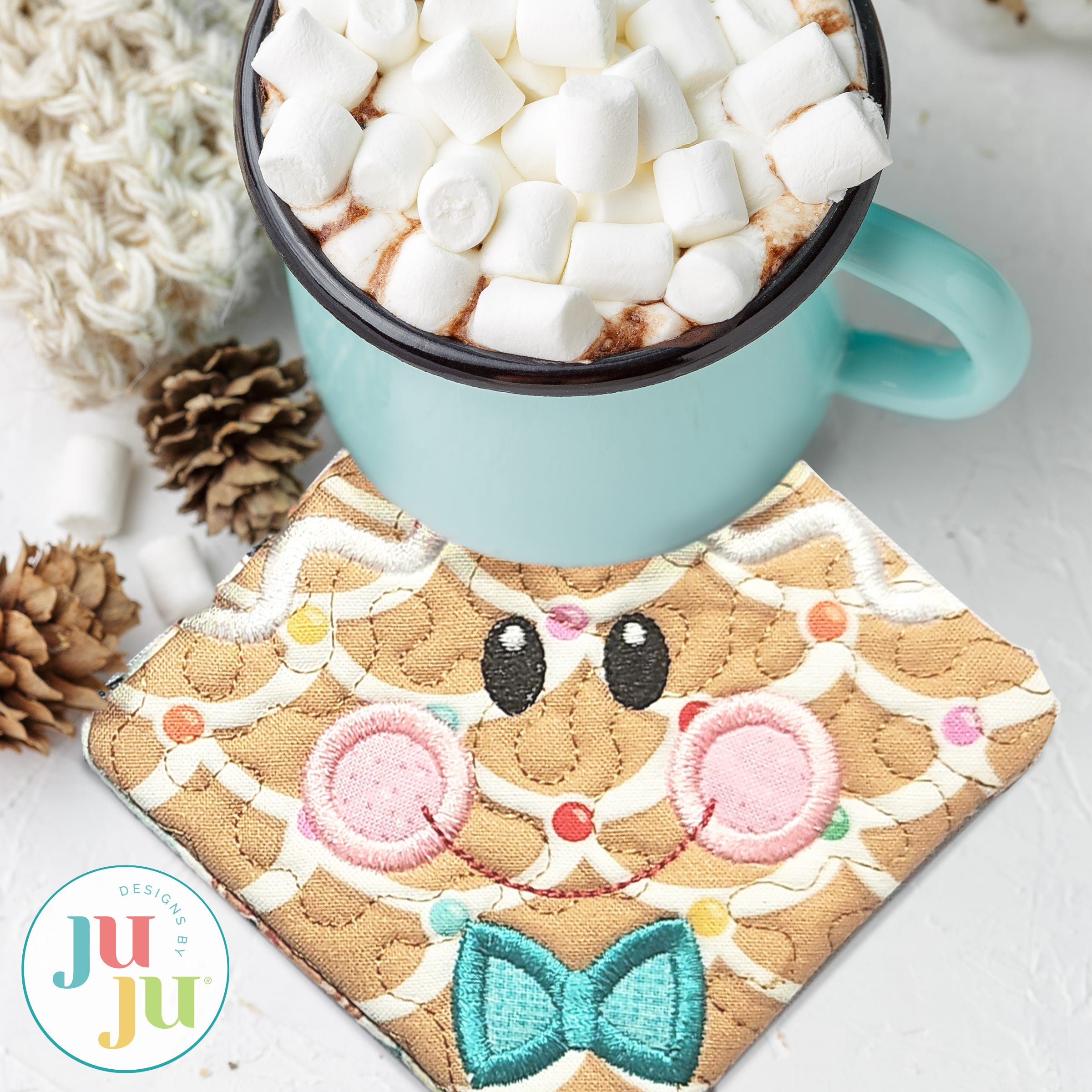 Christmas Face Coaster Set 2 includes two coaster designs: a sweet Gingerbread Face and a cute Snowman Face.