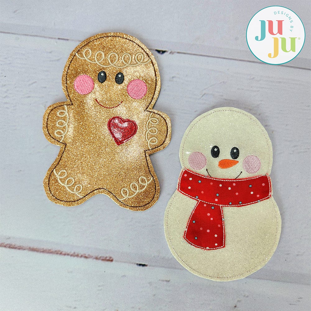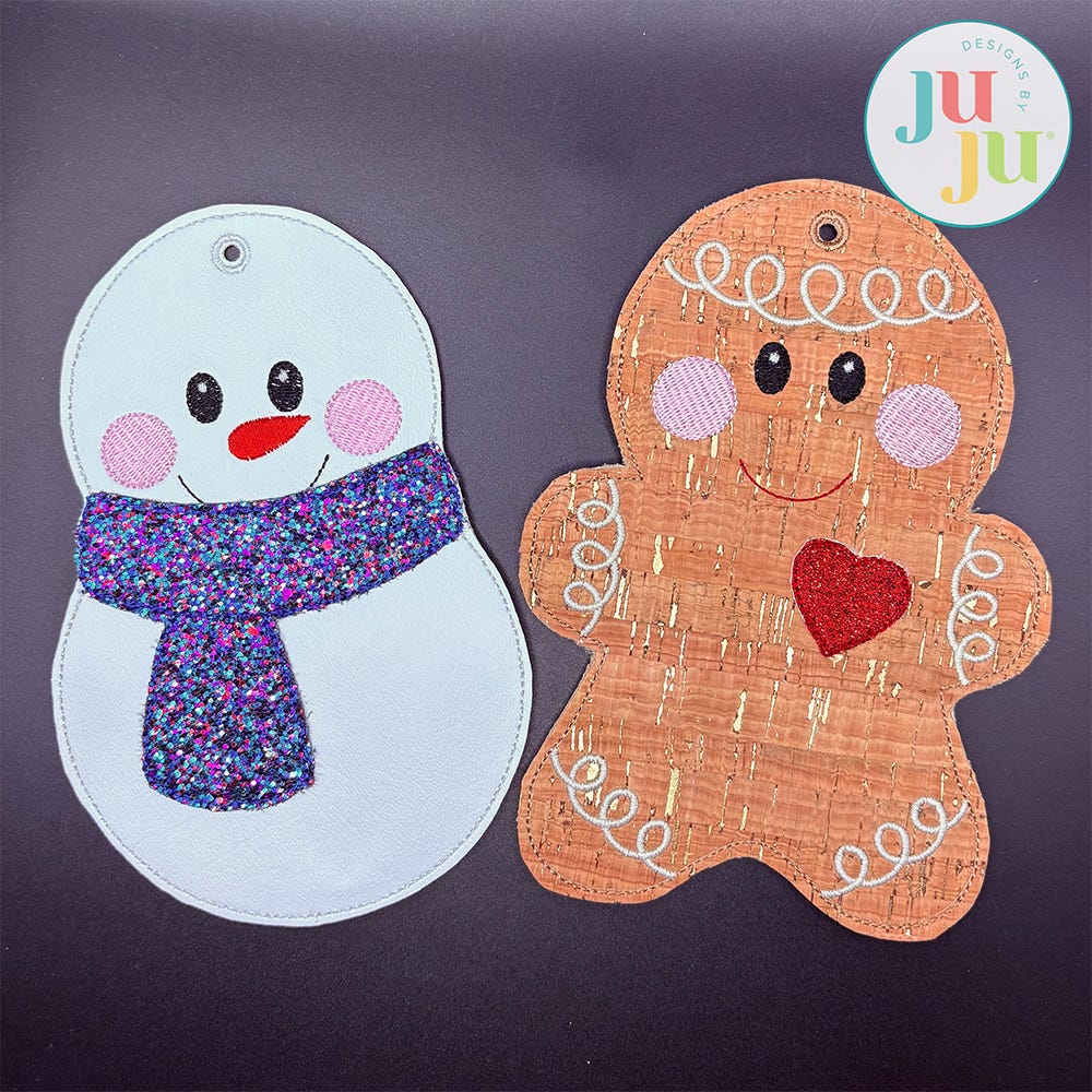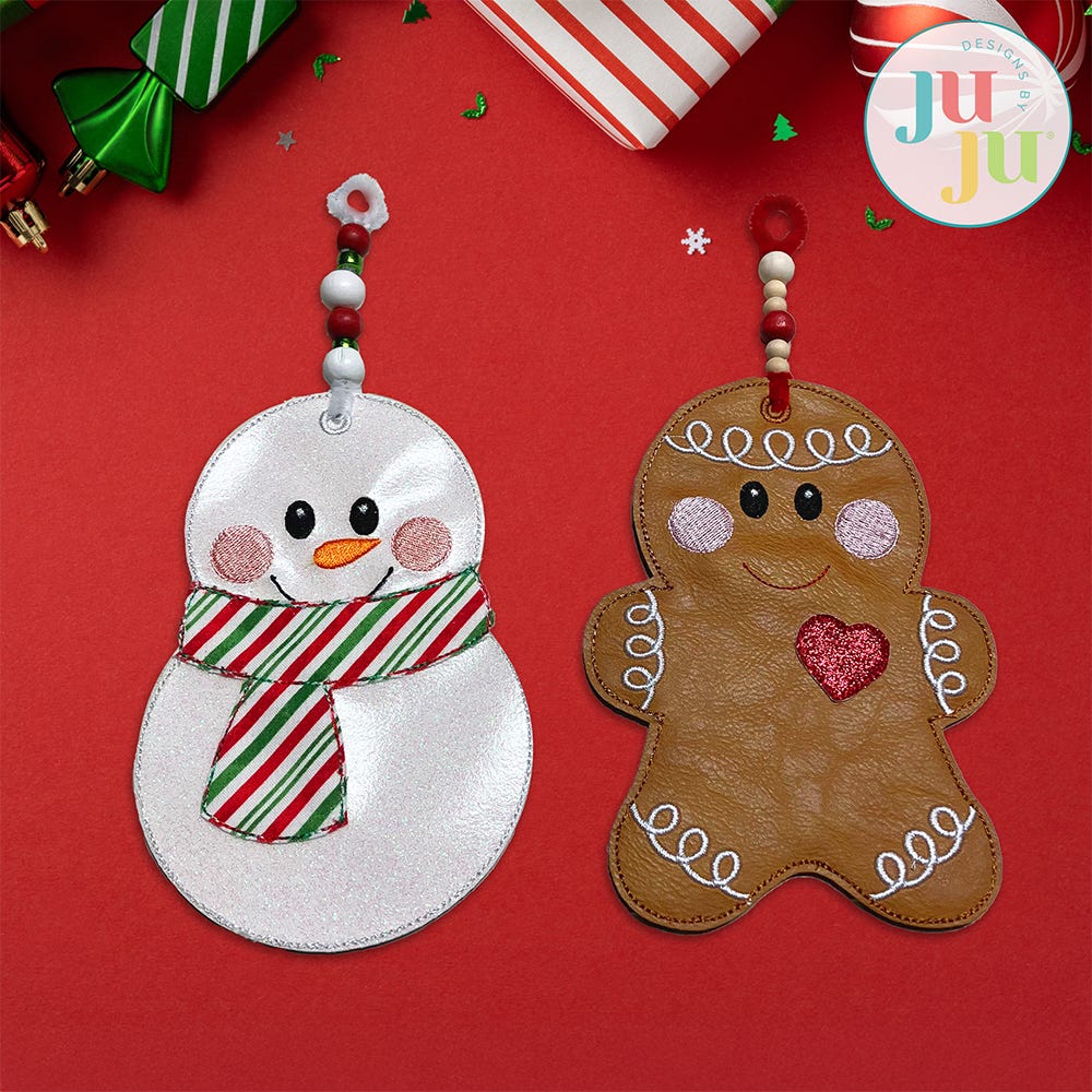 Make your Christmas gift-giving extra festive with our ITH Gift Card Holders! This set includes a Gingerbread and Snowman. Make them with marine vinyl, glitter vinyl for extra sparkle, or use felt for a homestyle look. A pocket for the gift card is on the backside; an optional eyelet is included to make it an ornament or gift tag.