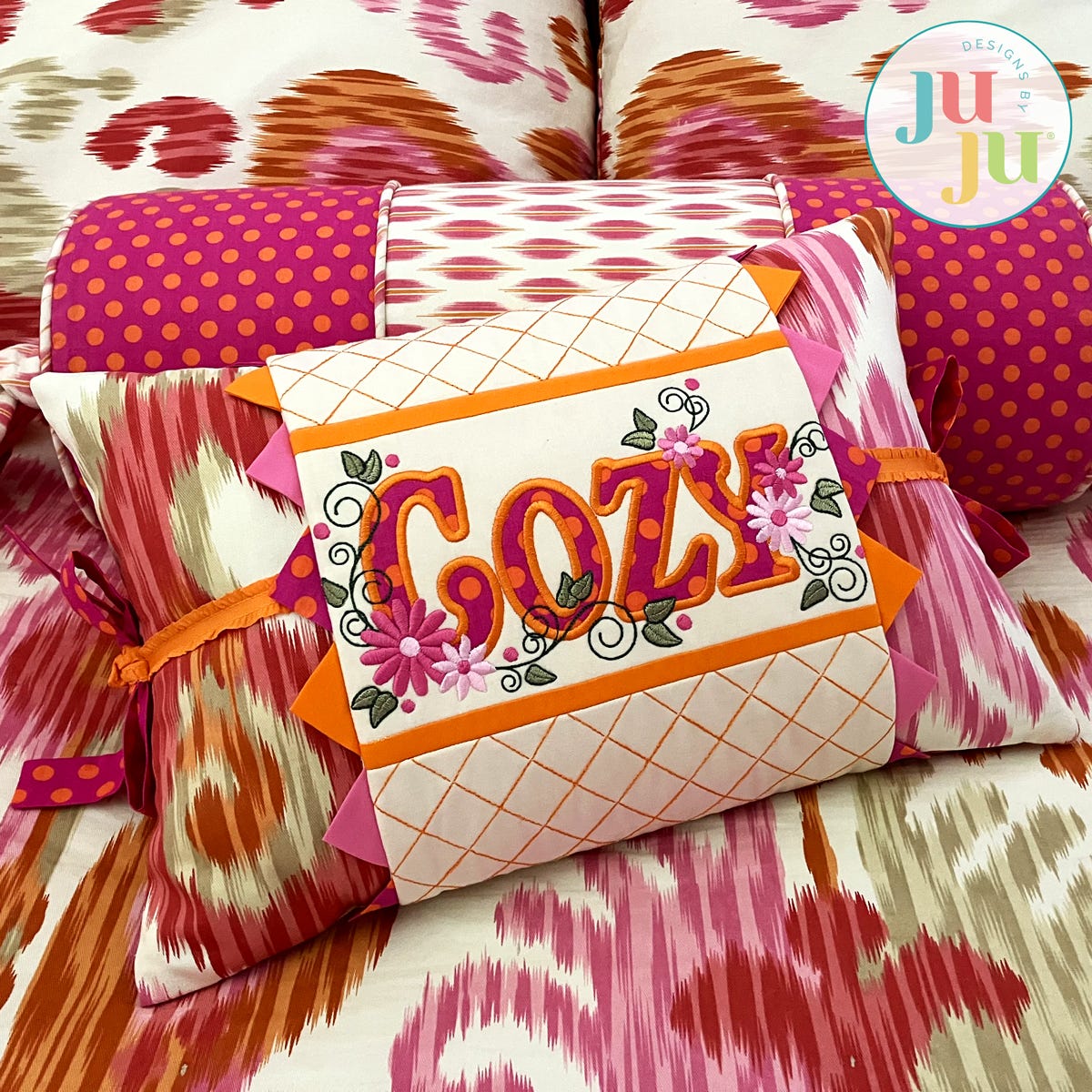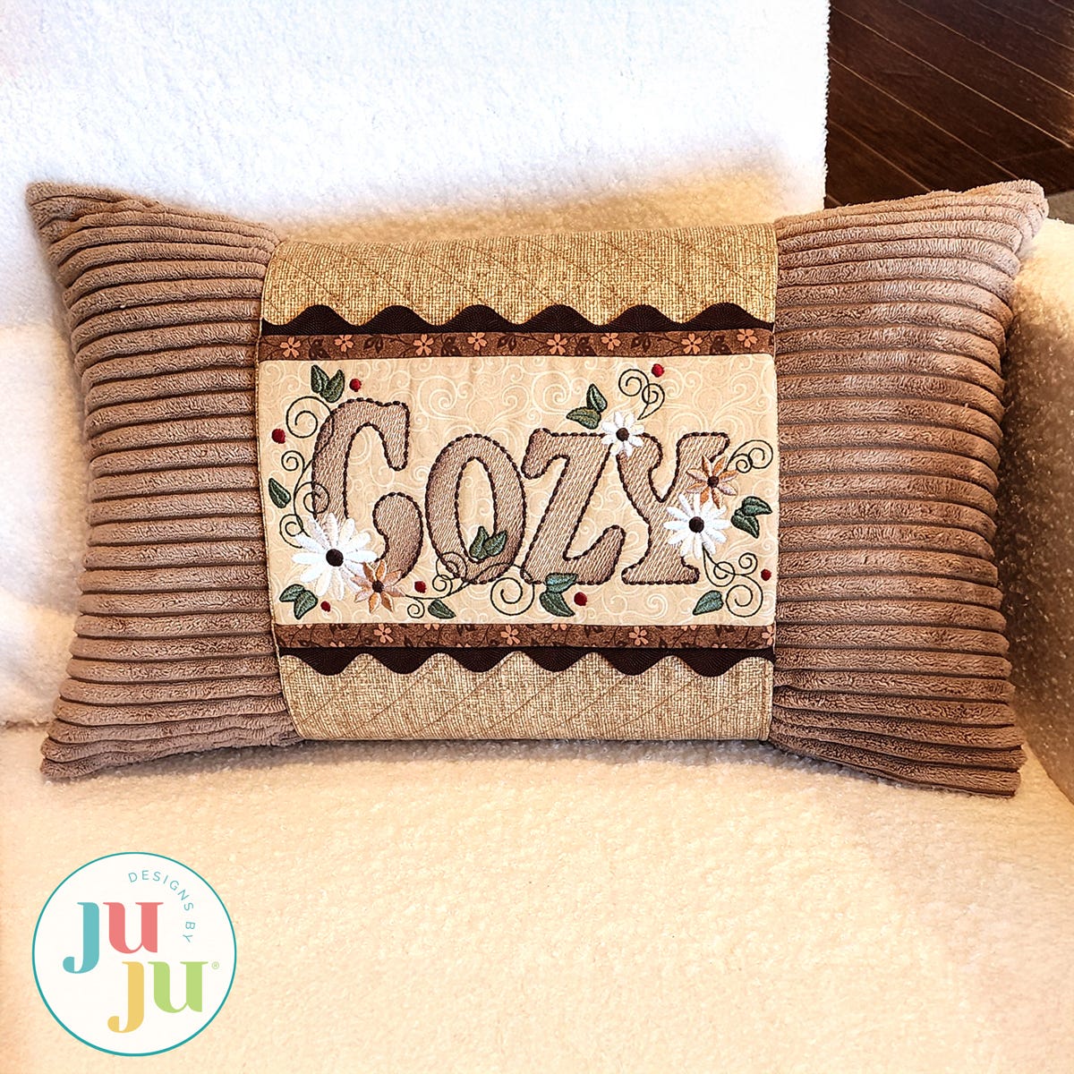 Add a heartwarming touch to your décor with this machine-embroidered pillow wrap, featuring the word "Cozy" as its charming centerpiece. Designed to dress up your pillows with ease, this wrap can be customized with prairie points, ruffles, lace or trim for an extra dash of handmade flair. It's the perfect way to bring comfort and style to any room—seasonal or year-round.