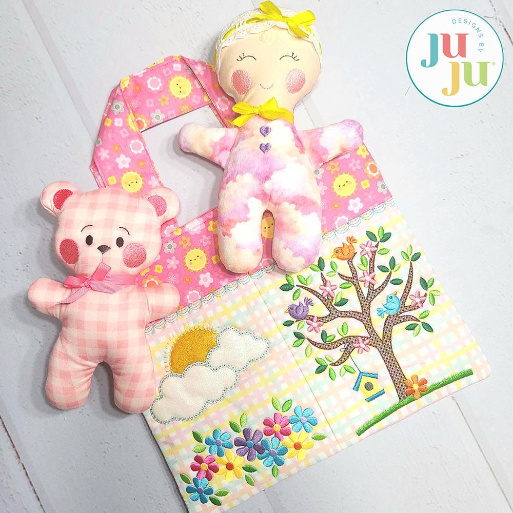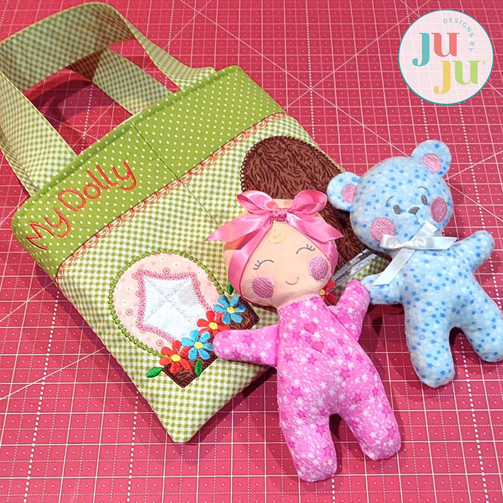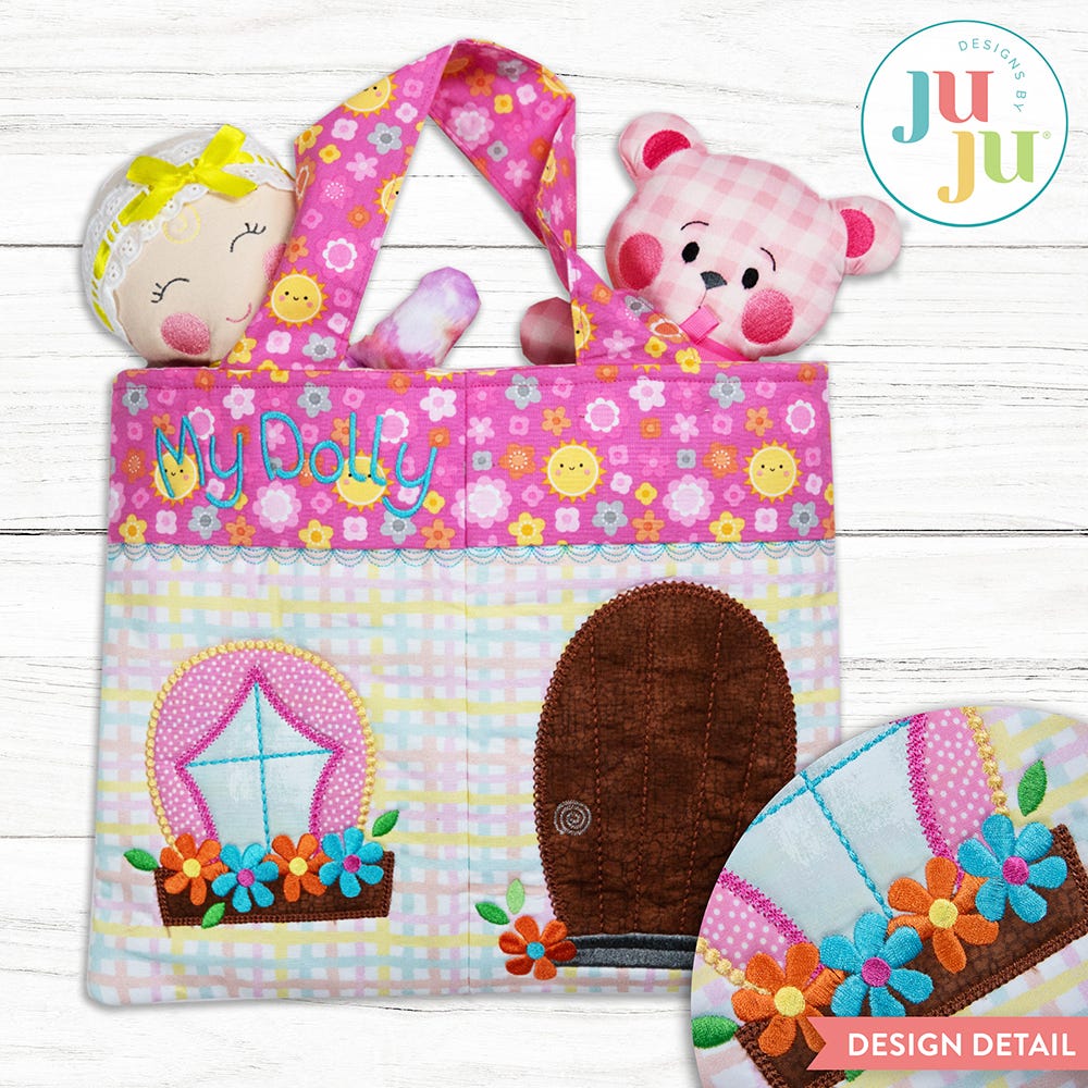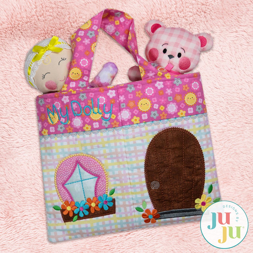 Delight in the magic of make-believe with this charming little dollhouse bag, complete with an adorable doll and cuddly bear—each lovingly crafted with precision using your embroidery machine. Perfect for imaginative play at home or on the go, this set combines creativity, craftsmanship, and cuteness in one portable package.