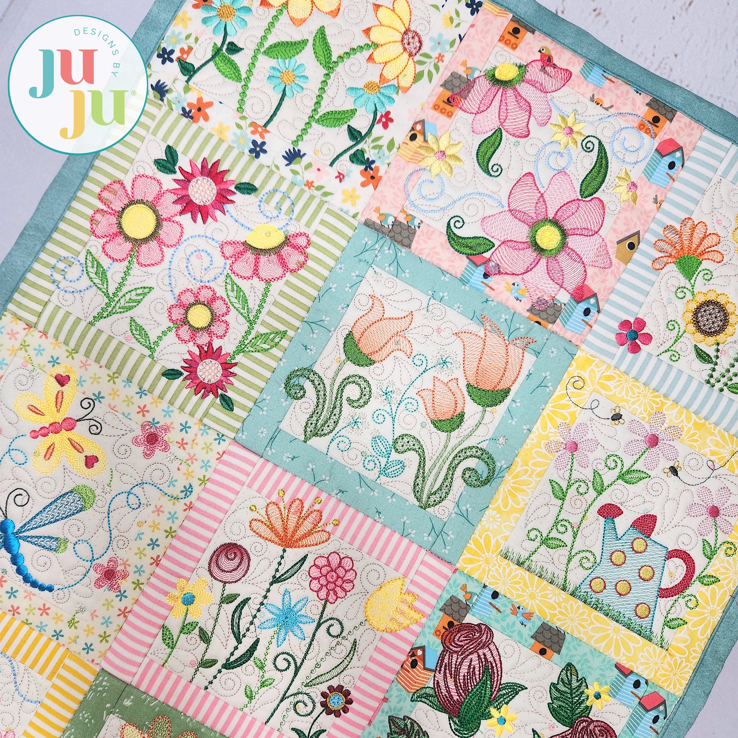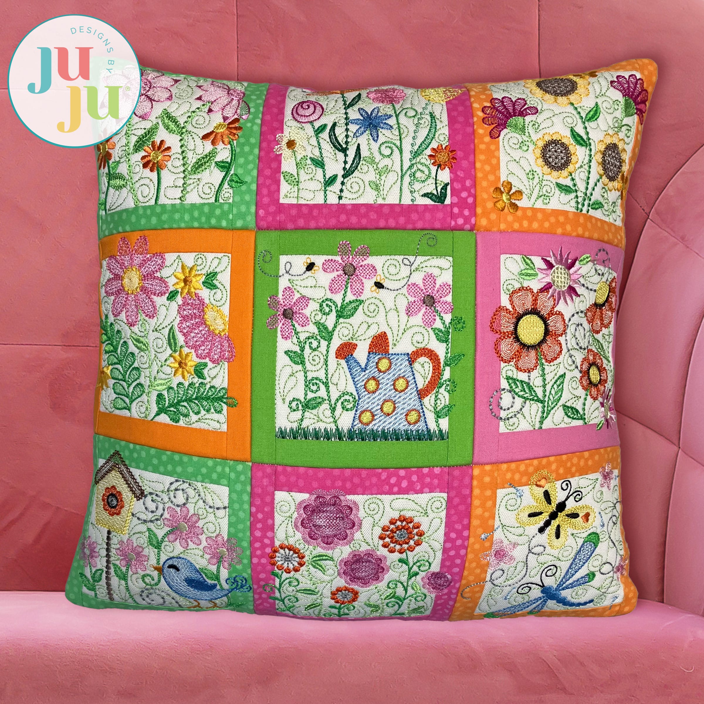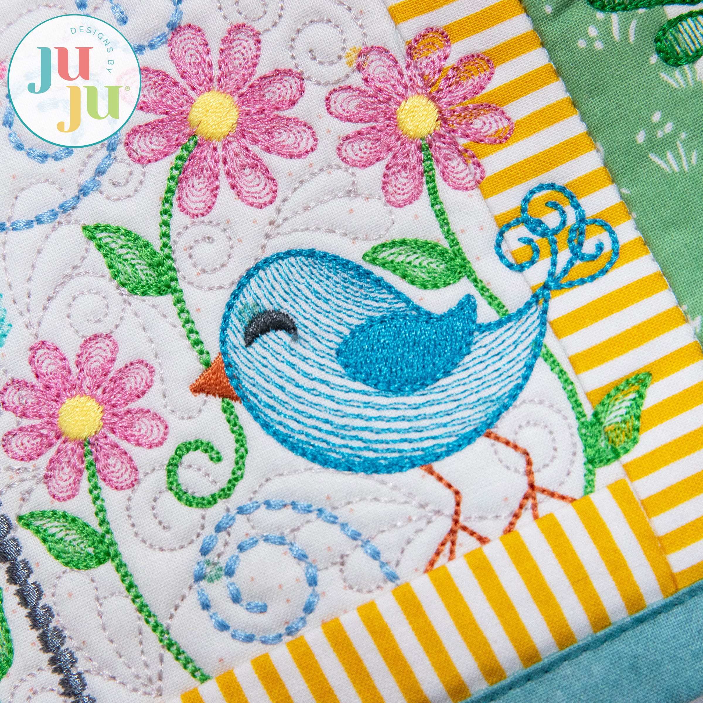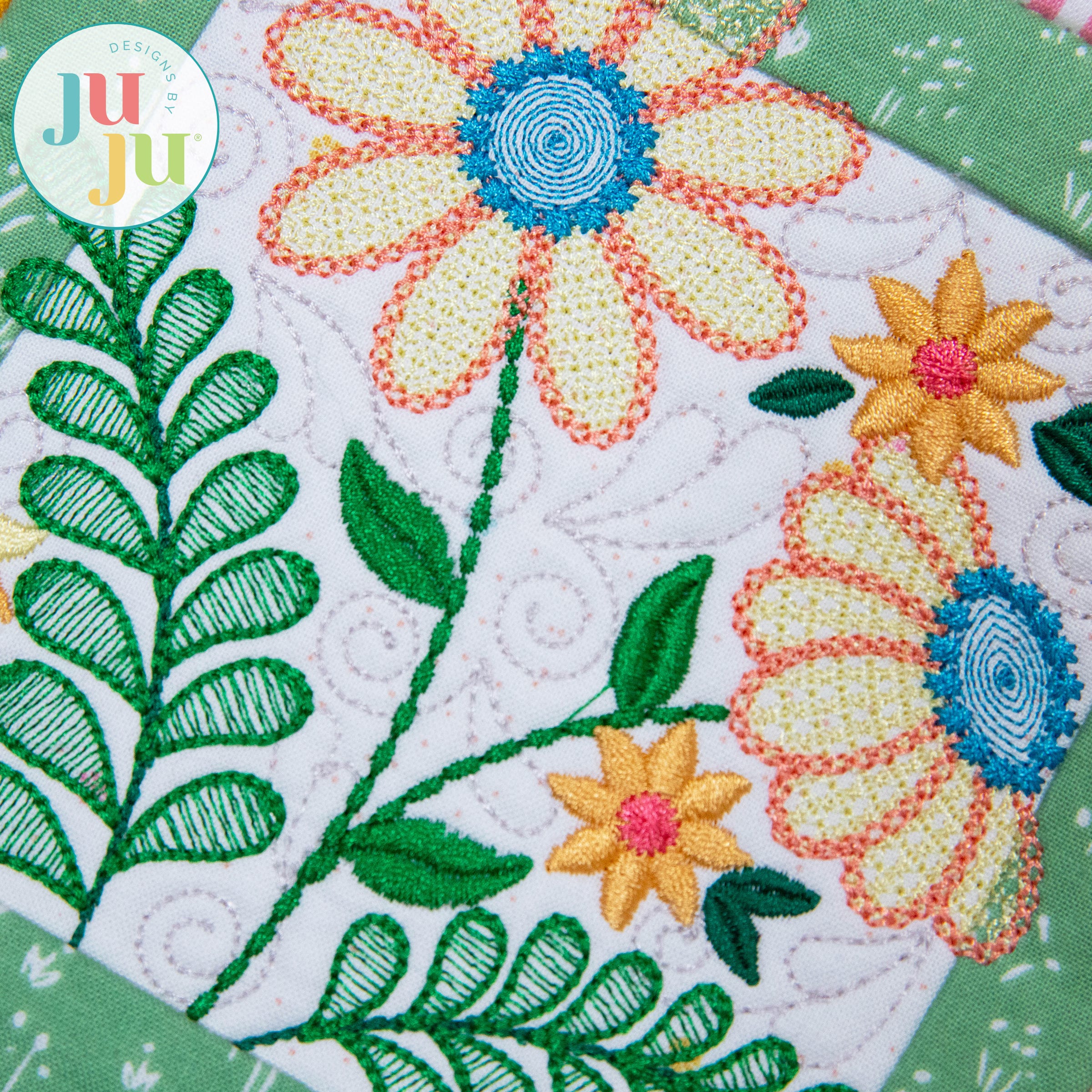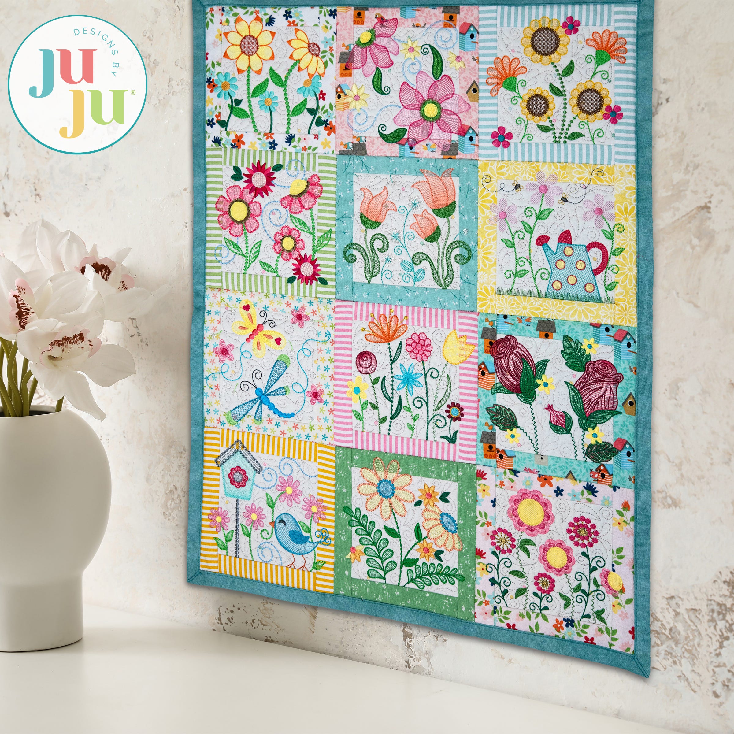 Bring signs of spring and summer into your home with our Garden Whimsy Wall Hanging! This project has twelve blocks, each with stitch-and-flip borders and a lovely floral embroidery-only design on top.