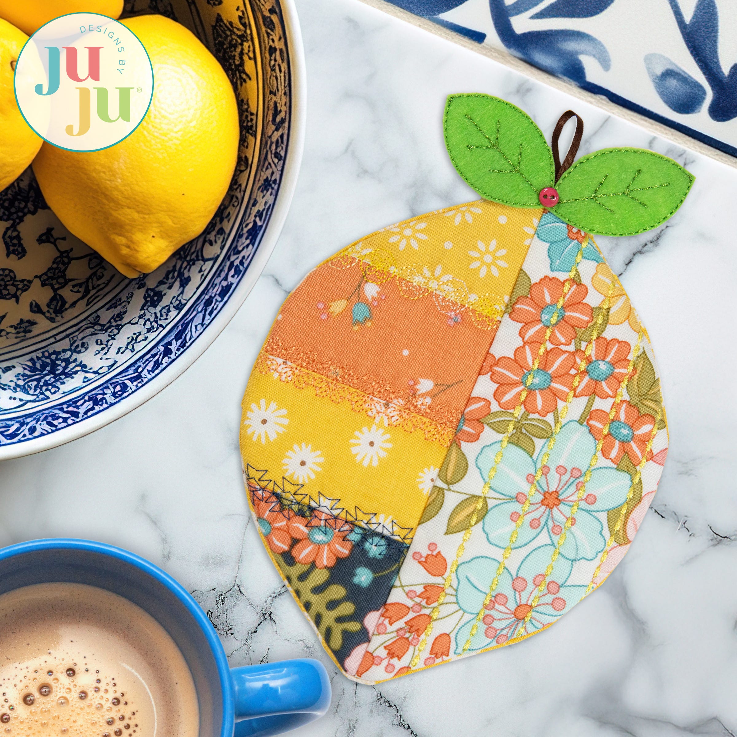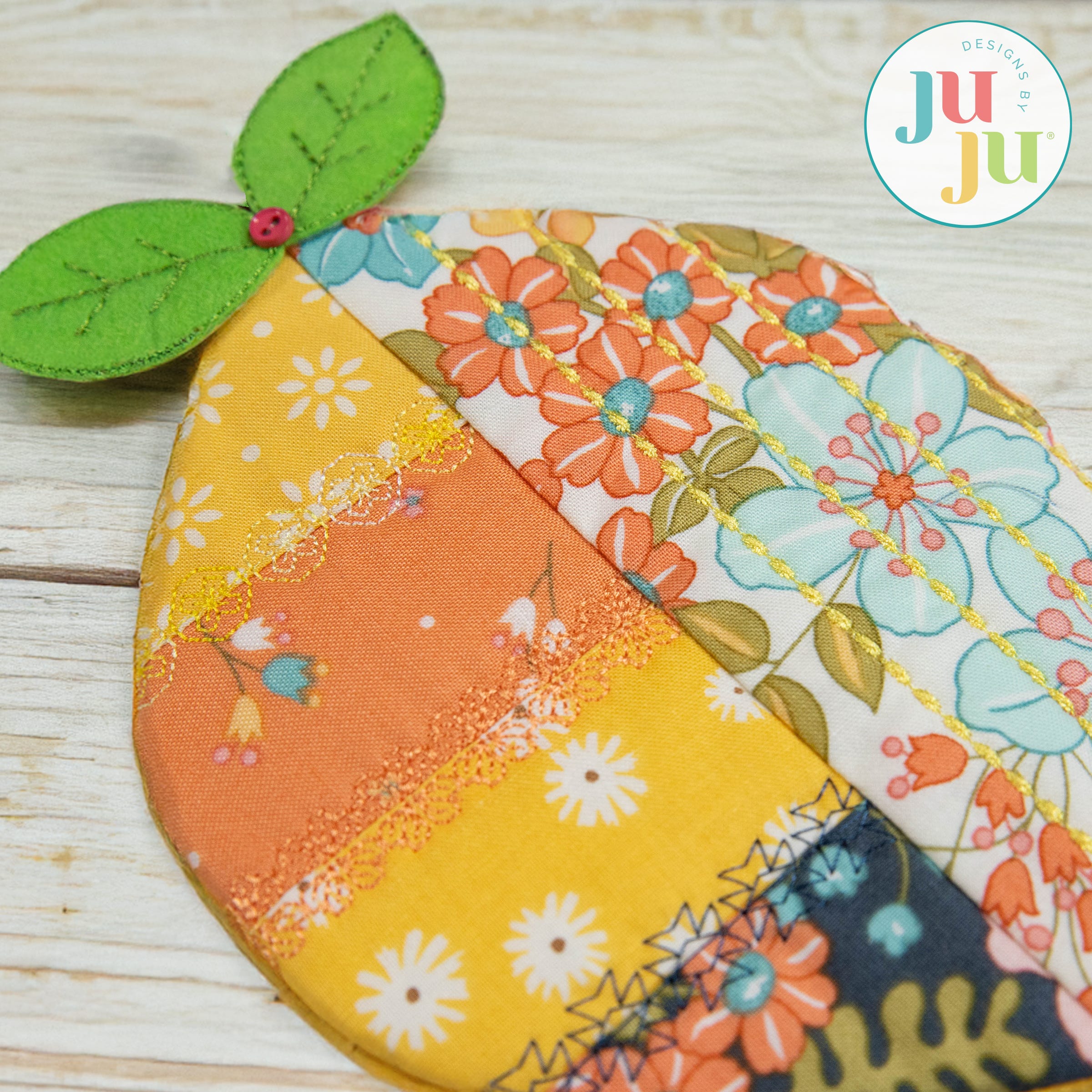 This design features "stitch-and-flip" patchwork applique with decorative motif stitching over the seams. There are three options for finishing the coaster depending on your preferred style: