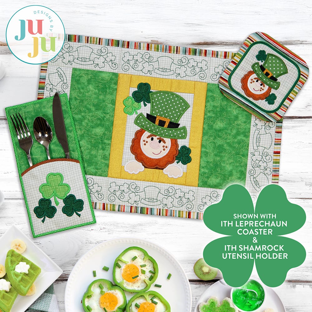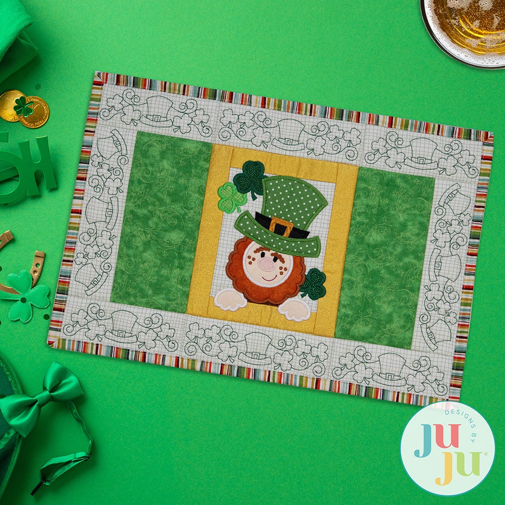 Bring the luck of the Irish to your dining room table with this fun Modular Leprechaun Placemat, crafted to perfectly complement our coordinating Modular Leprechaun Table Runner. When made with the fabric and threads of your choice, it will add both whimsy and functionality to your special meals!