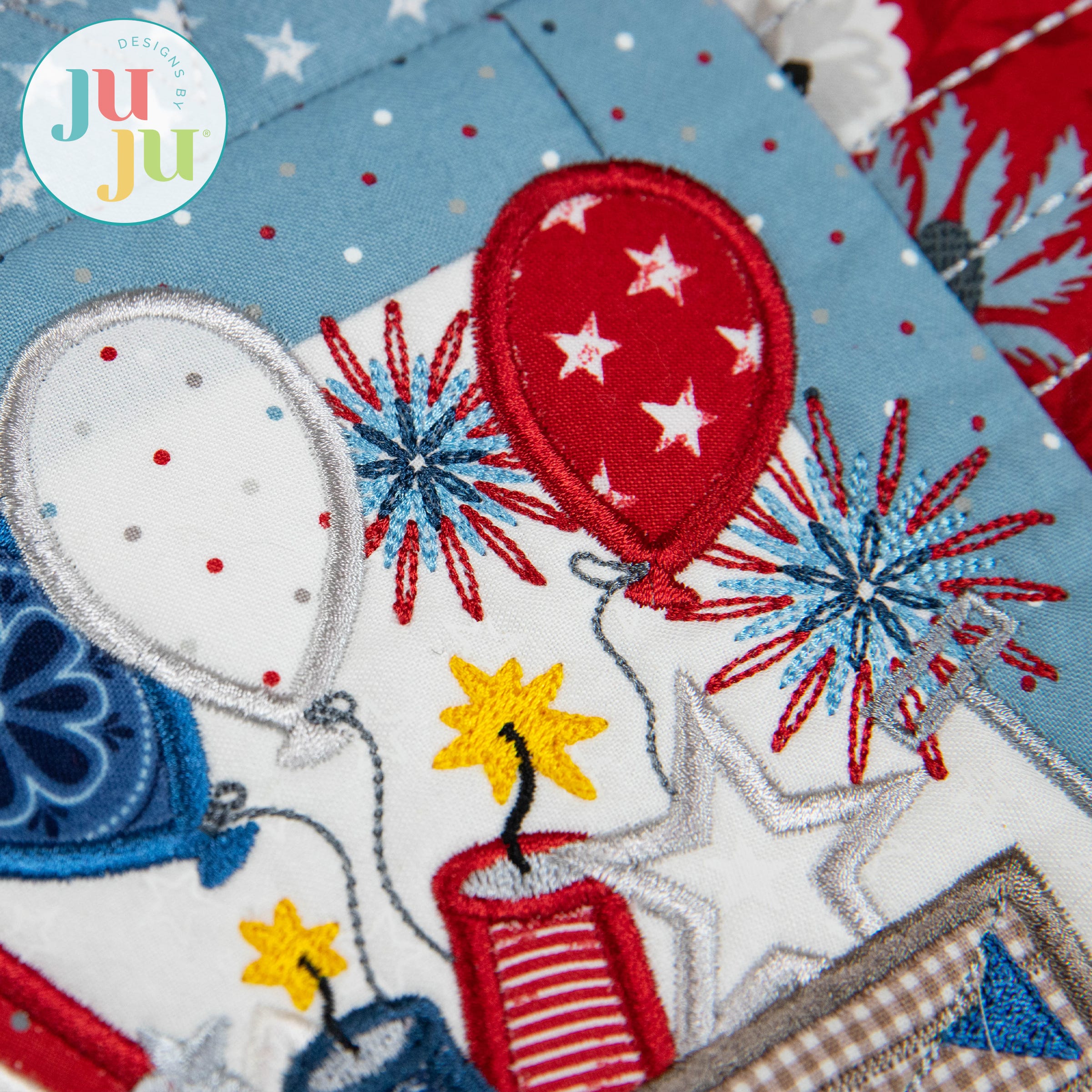 This set includes: Main Patriotic design, Horizontal Stripe Side blocks, and Flag Border blocks. (Bonus Zig Zag border blocks that coordinate with our Modular Table Runner designs are also included.)