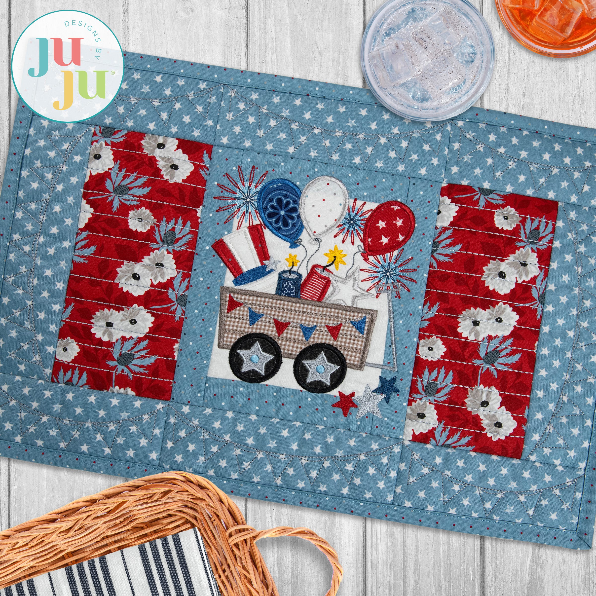 Enhance your table setting with this festively designed Modular Patriotic Placemat, crafted to perfectly complement our coordinating Modular Table Runner. When made with the fabric and threads of your choice, it will add both style and functionality to any dining occasion.