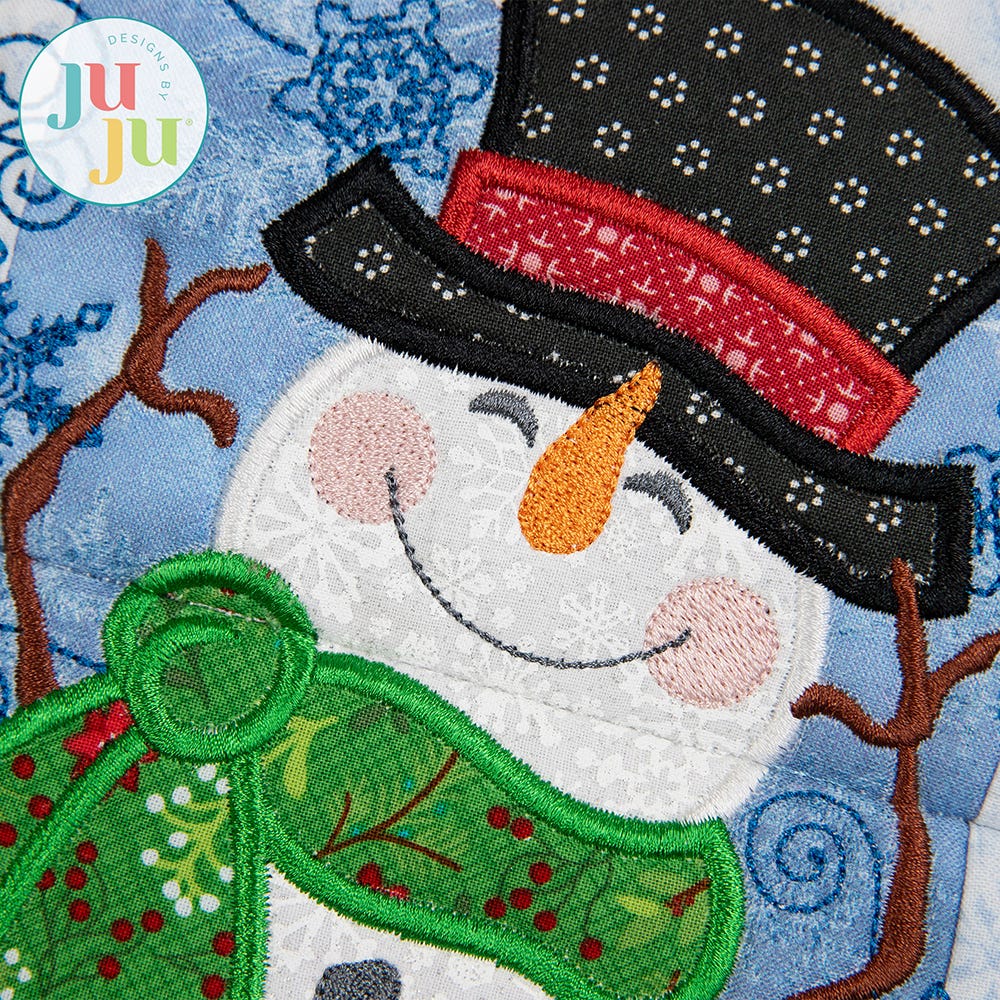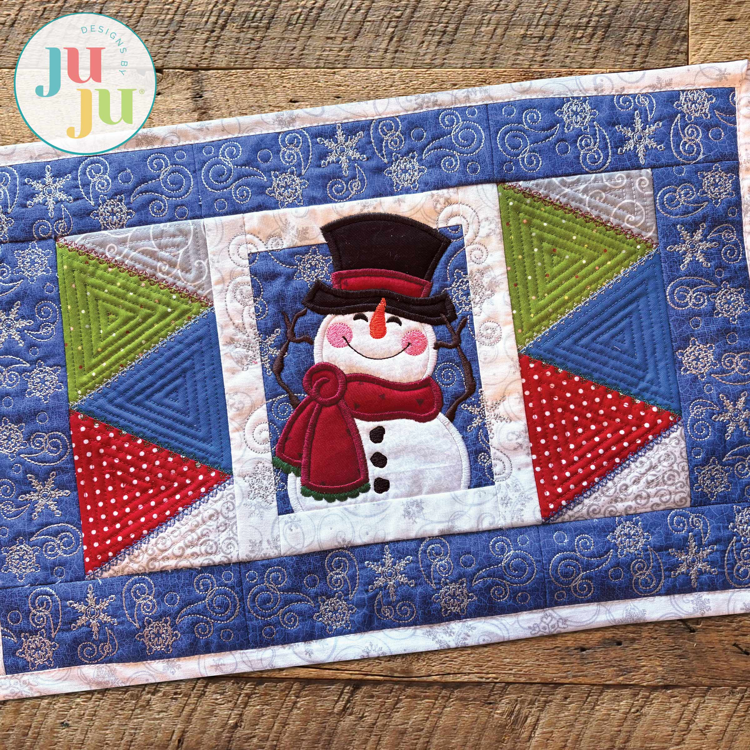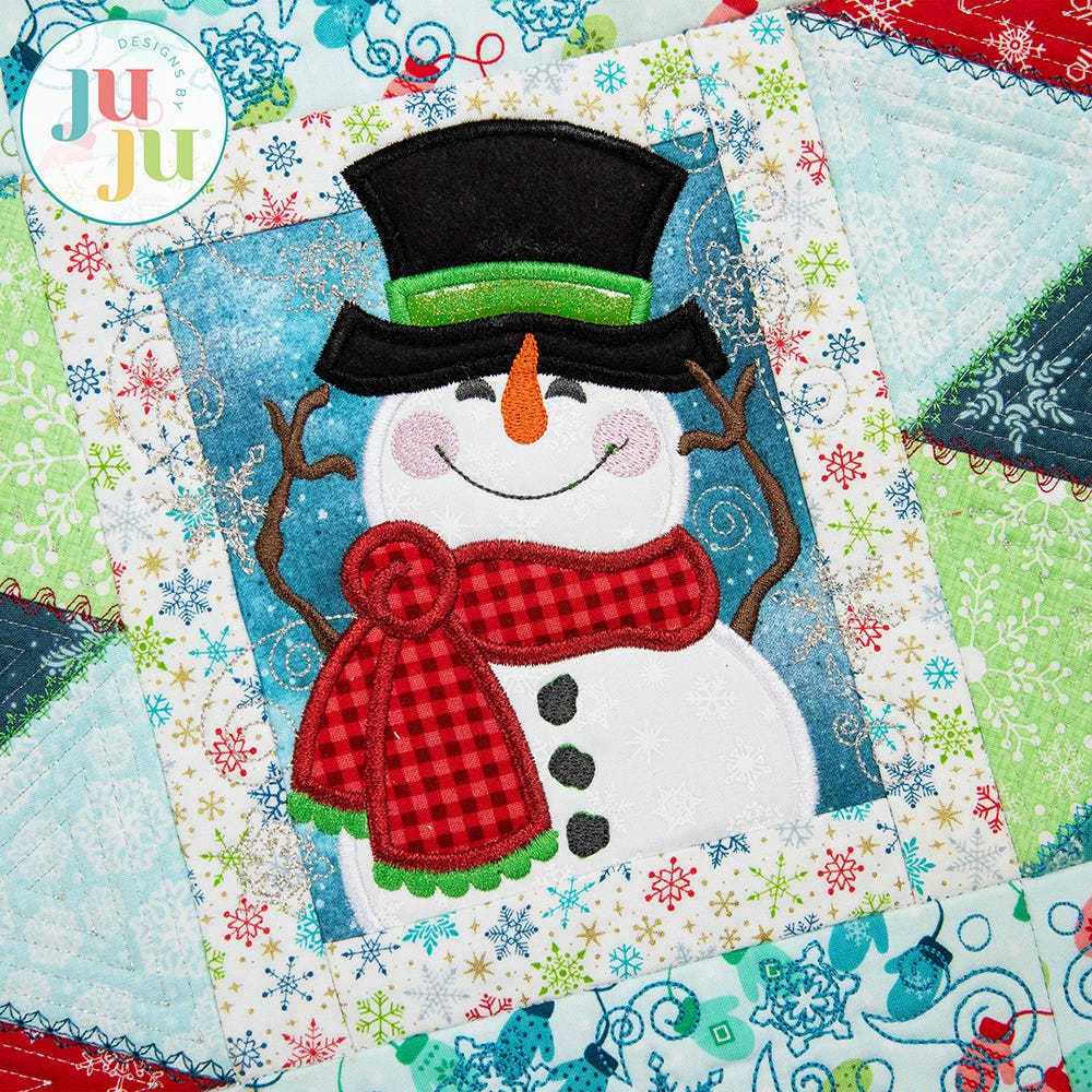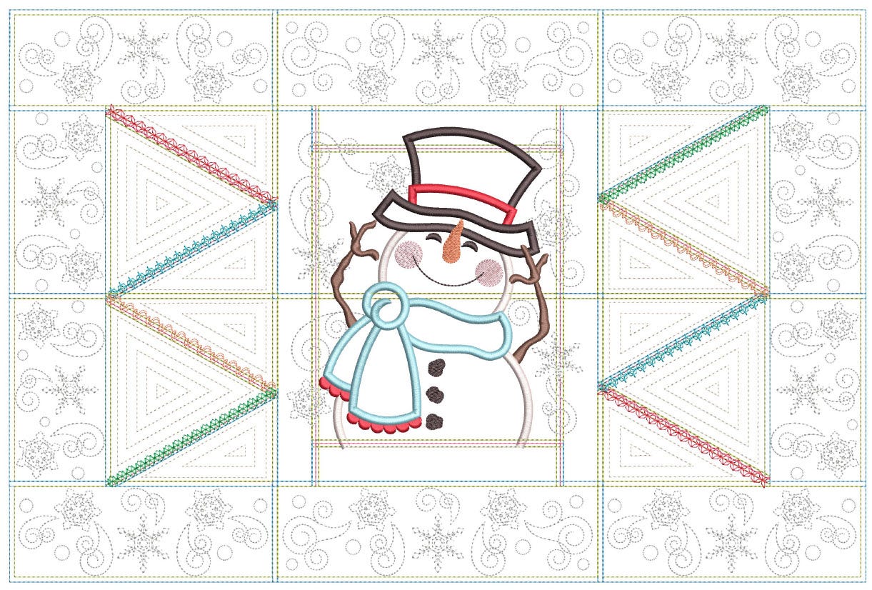 This set includes: Main Snowman design, Zig Zag Patchwork Side blocks, and Snowflake Border blocks. (Bonus Zig Zag border blocks that coordinate with our Modular Table Runner designs are also included.)