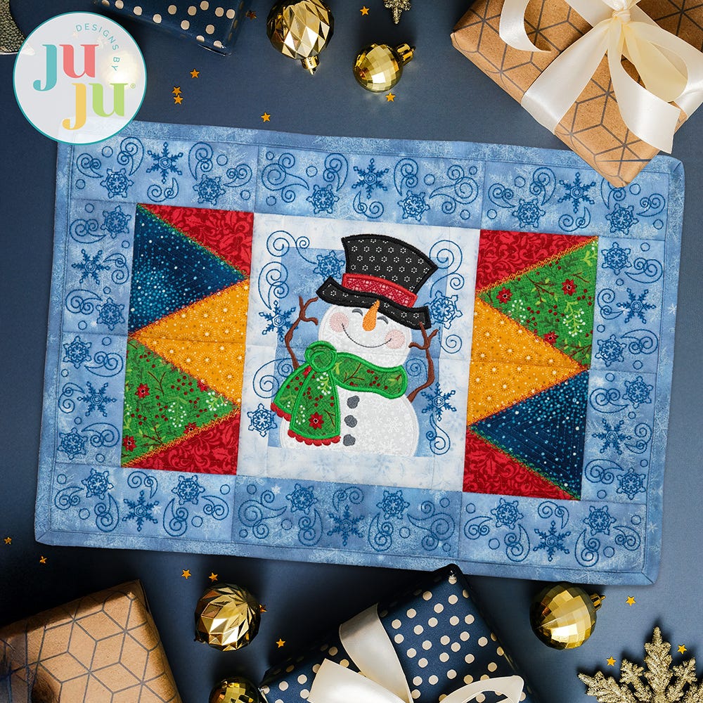 Add a touch of winter whimsy to your dining room with our Modular Snowman Placemat, crafted to perfectly complement our coordinating Modular Snowman Table Runner. When made with the fabric and threads of your choice, it will add both style and functionality to any cozy meal!