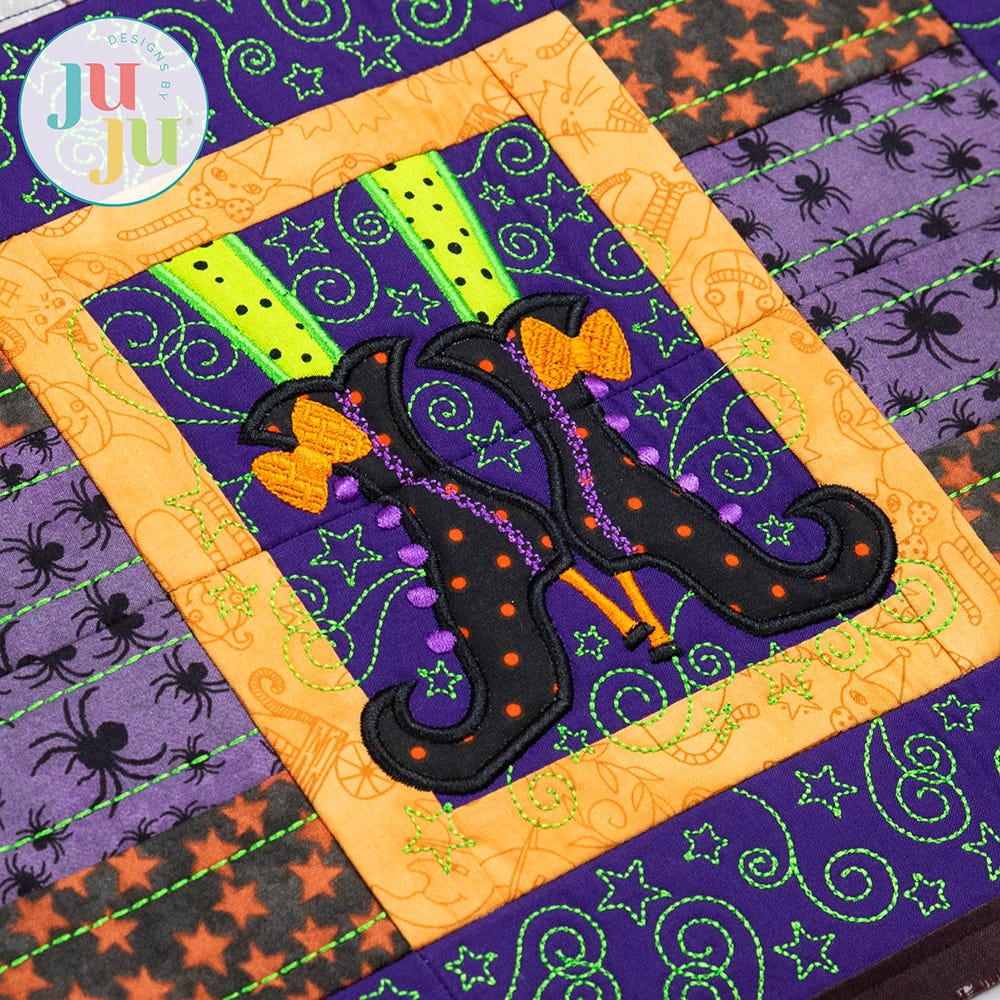 This set includes: Main Witch Feet design, Pieced Horizontal Stripes Side blocks, and Stars and Swirls Border blocks. (Bonus Zig Zag border blocks that coordinate with our Modular Table Runner designs are also included.)