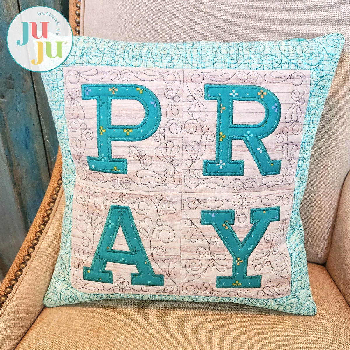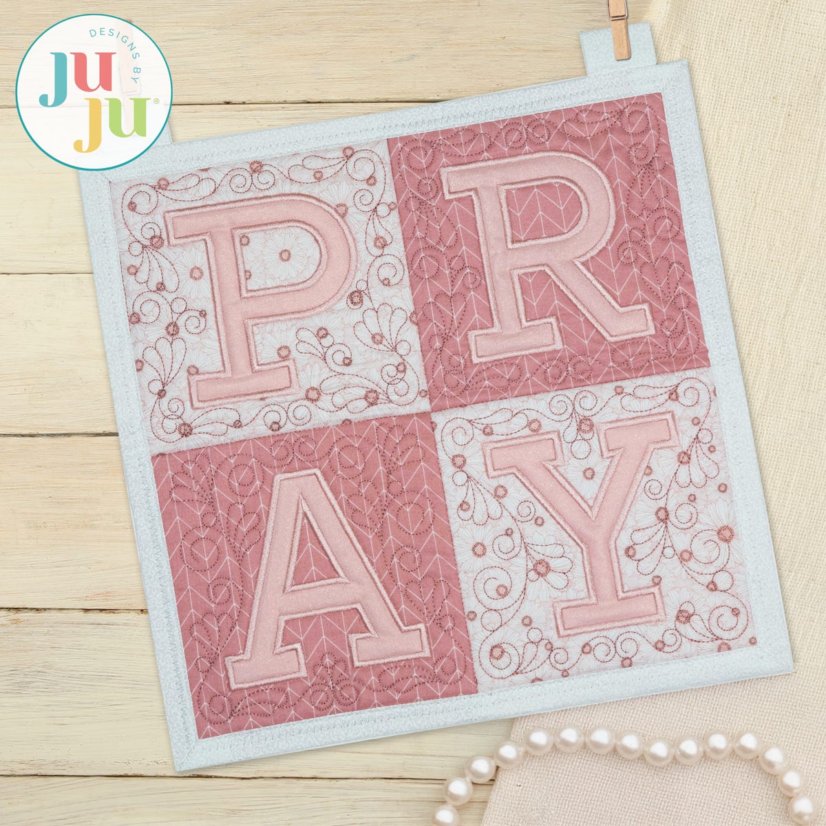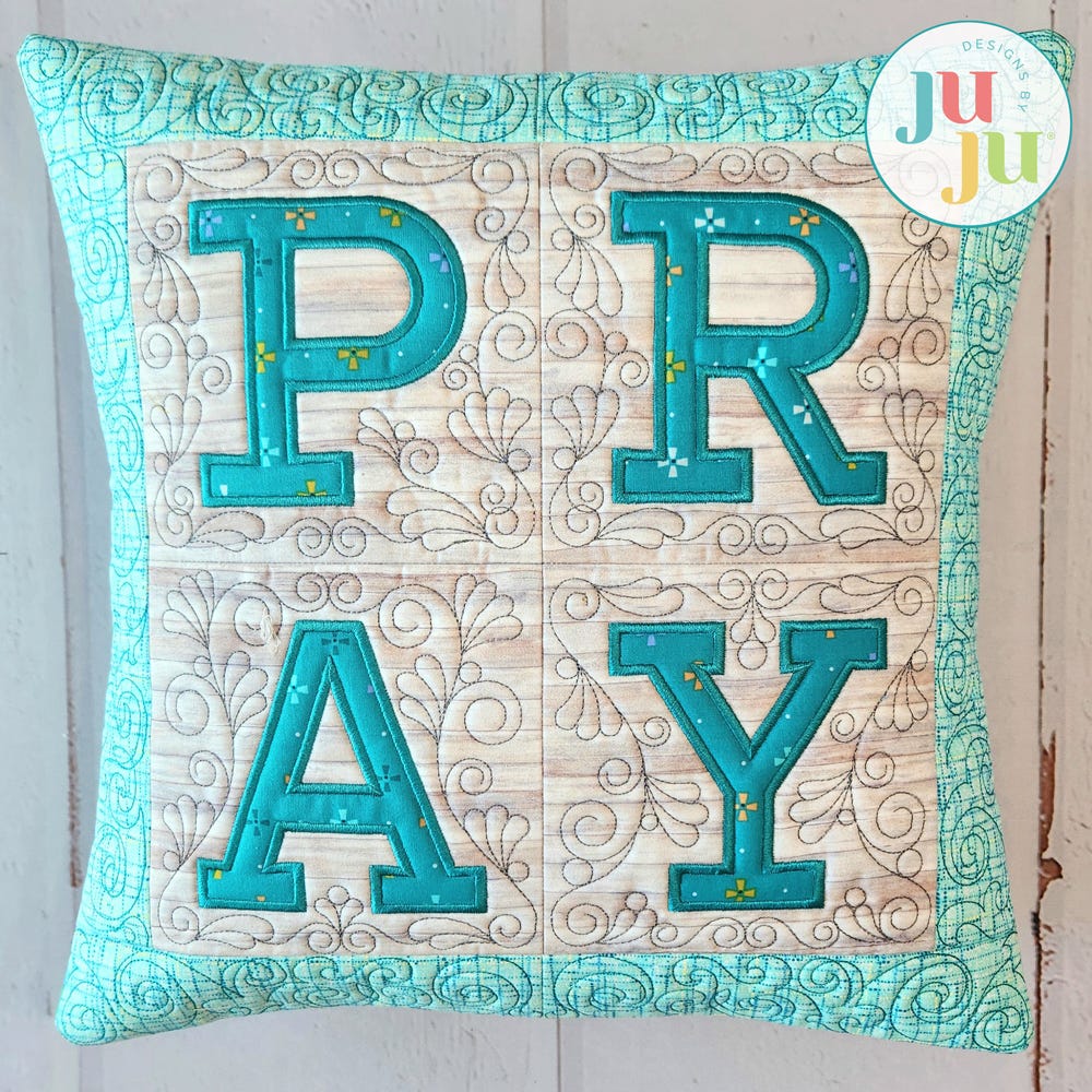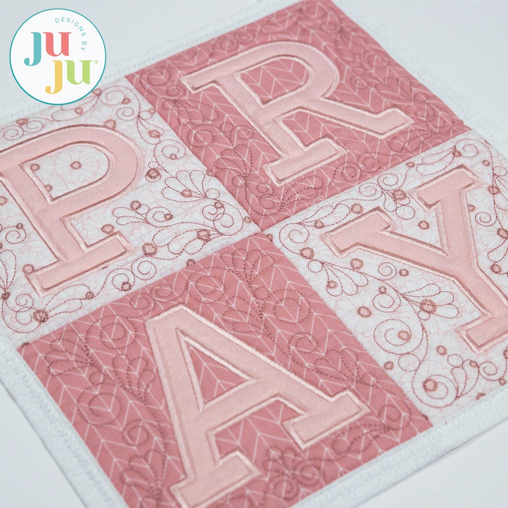 Let your space reflect peace and purpose with this beautifully crafted PRAY Wall Hanging. This project has four blocks; each applique letter is surrounded by lovely bean stitch swirls.