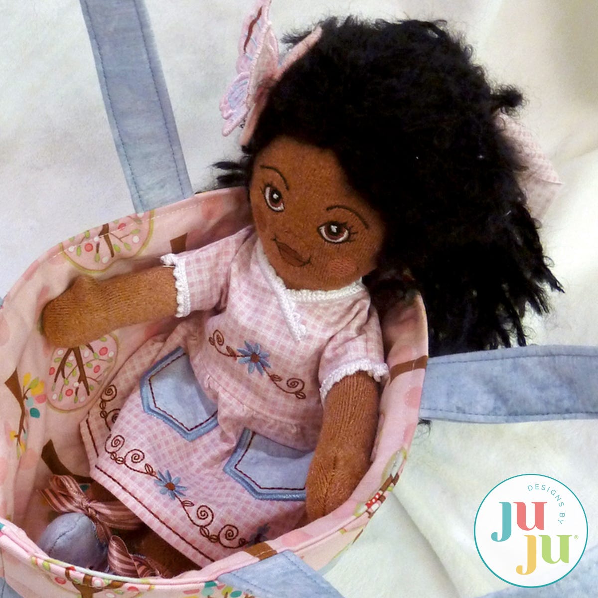 Sewing instructions for a small doll carrying tote is also part of your purchase.