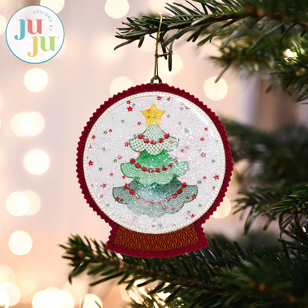 Add sparkle to your Christmas tree with our Snow Globe ornaments! Six designs are included: the Christmas tree, gingerbread, manger and snowman designs feature sketch and motif fills; the snowflake is satin stitch. Also included is a blank snow globe that can be personalized with the font of your choice or allows for fussy-cutting fun fabric!