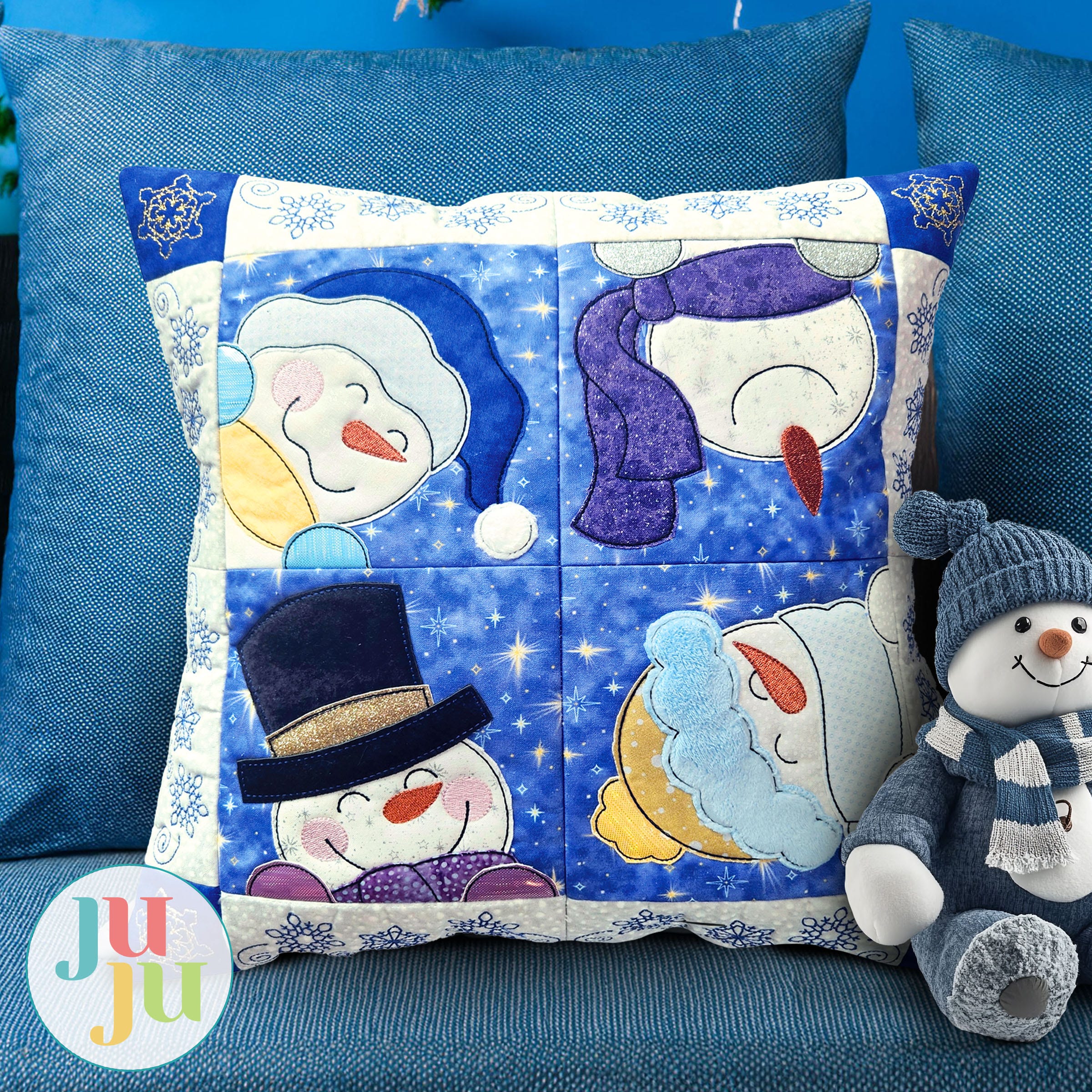 Decorating your living room for winter will be snow fun with our Snowman Patchy Pillow Bean! It features four bean stitch applique snowman blocks rotated in different directions with bean stitch snowflakes and swirls in the border blocks. Easy to make and assemble! Complete step by step PDF photo tutorial included with your download.