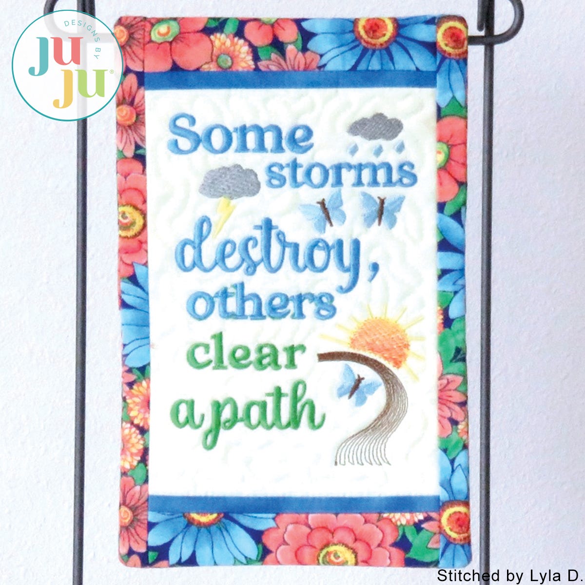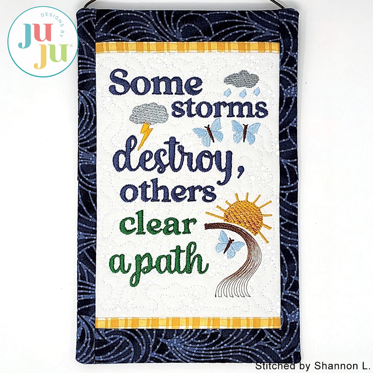 This motivational mini quilt is a great home decoration or gift for friends and family. The background of the mini quilt is quilted in the hoop and the various borders get attached during the embroidery. There is a "sleeve" in the back that will make it easy to hang the quilt. The sleeve, too, is applied during the embroidery process. No additional hand or sewing machine stitching is required.