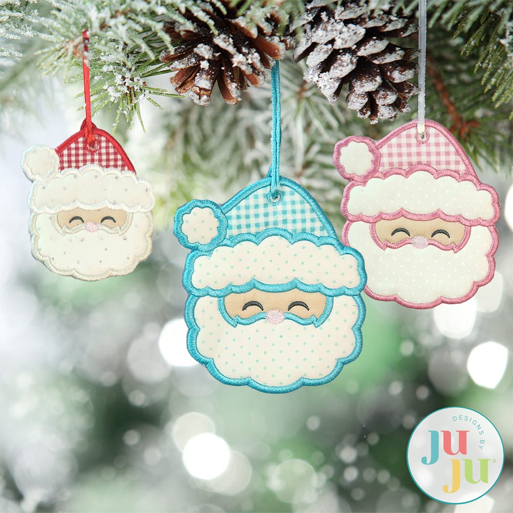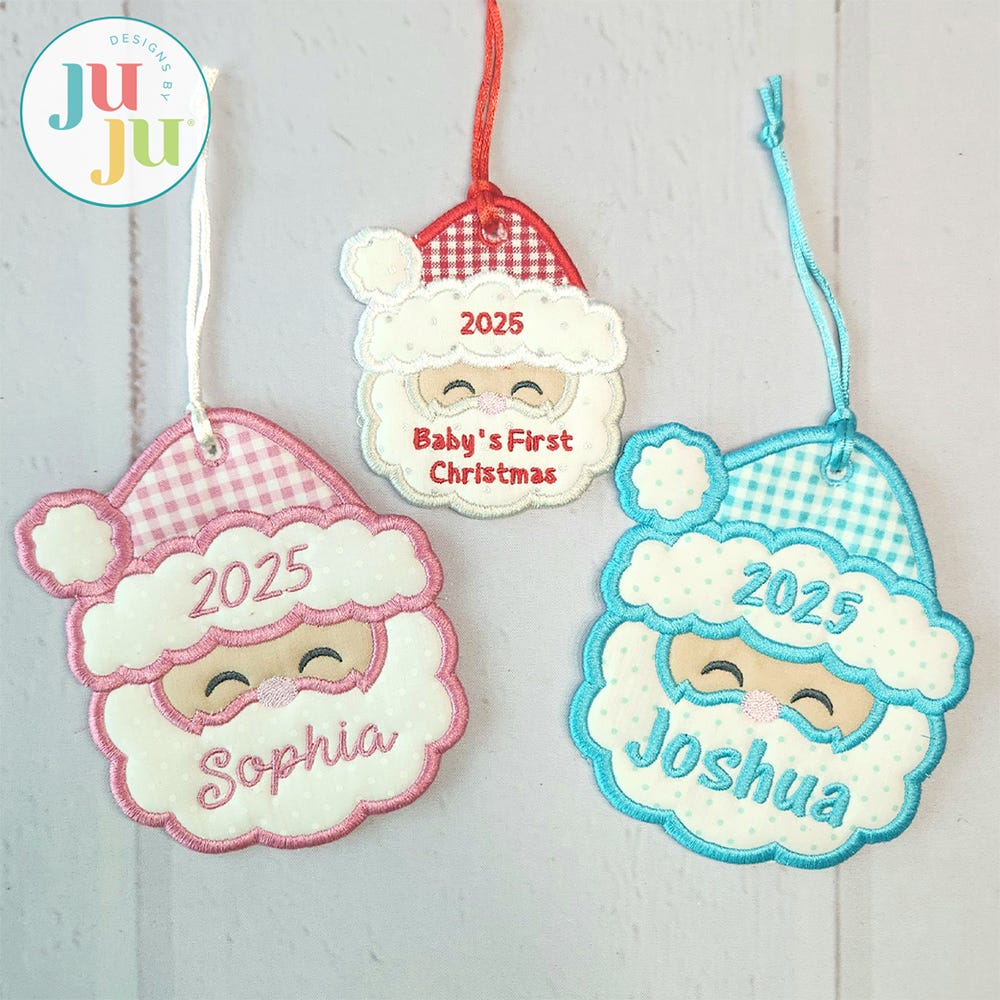 Our Sweet Santa applique design, popular since its release in 2018, is now available as a free standing ornament! The open space inside the beard is perfect for personalizing with the font of your choice, making it a precious custom gift to commemorate a special year or baby's first Christmas.