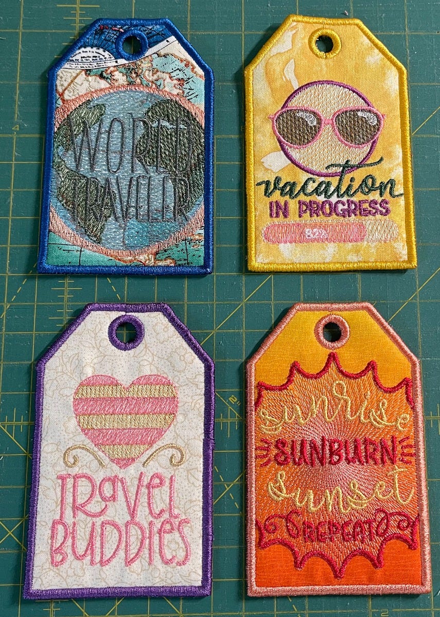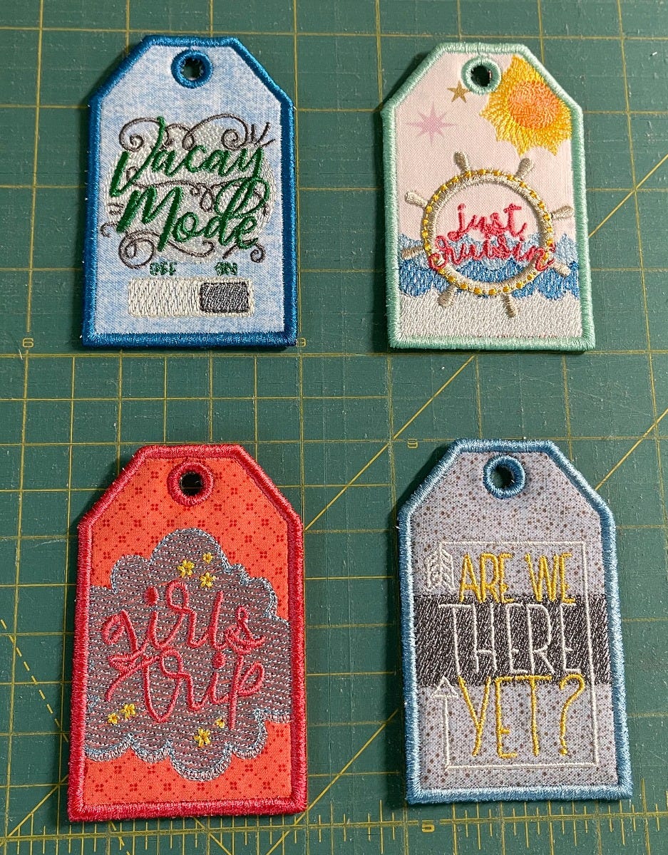 Made completely in the hoop, these fun luggage tags add a little sass and style to your bags.