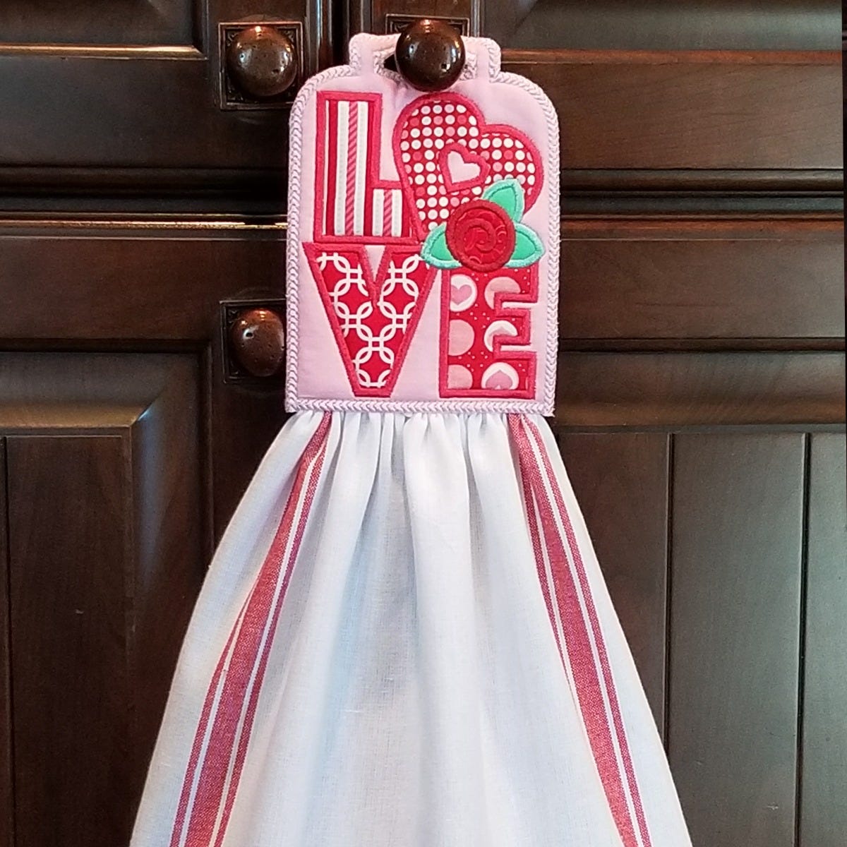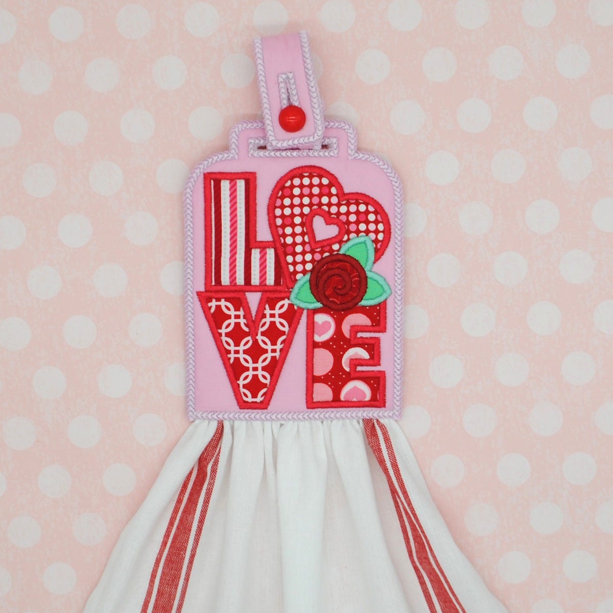 Get festive with these darling in the hoop Valentine towel hangers!