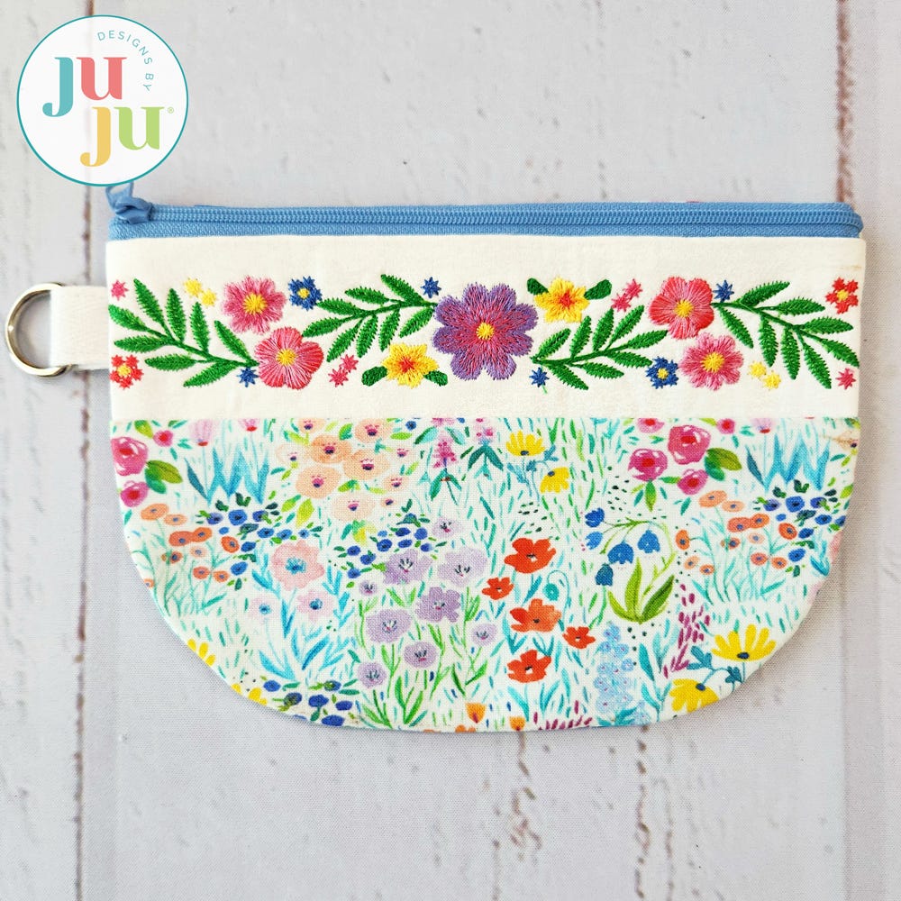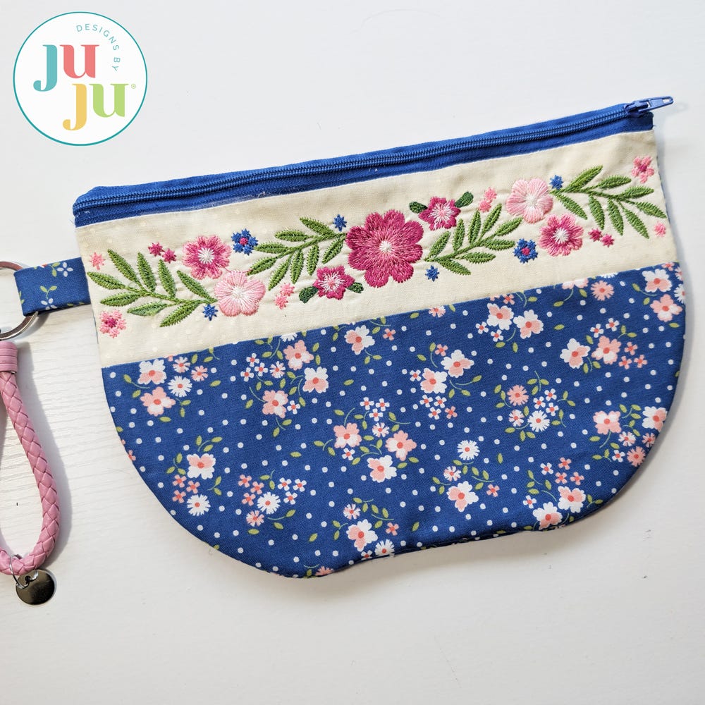 Create a timeless accessory with our Floral Zipper Bag, a stunning in-the-hoop project that combines functionality with vintage floral elegance. This fully lined zipper bag is crafted in one hooping, making it a perfect project for both beginner and experienced embroiderers.