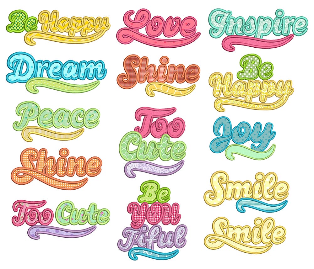 14 "inspiring" words in applique. Awesome for t-shirts and sweatshirts!