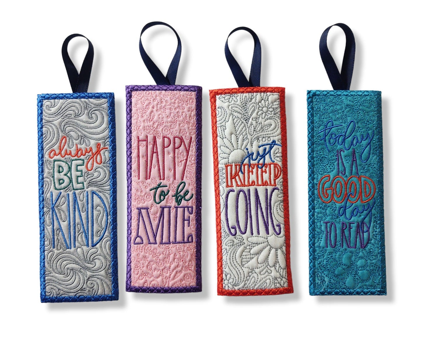 Find encouragement each time you open your book with one of our bookmarks! Coordinate the fabric on the back of each bookmark with the colors of the detailed embroidery to create unique and memorable bookmarks! The embroidered details feature bean stitch and satin stitch elements. Available in 3 sizes in each of the four designs.
