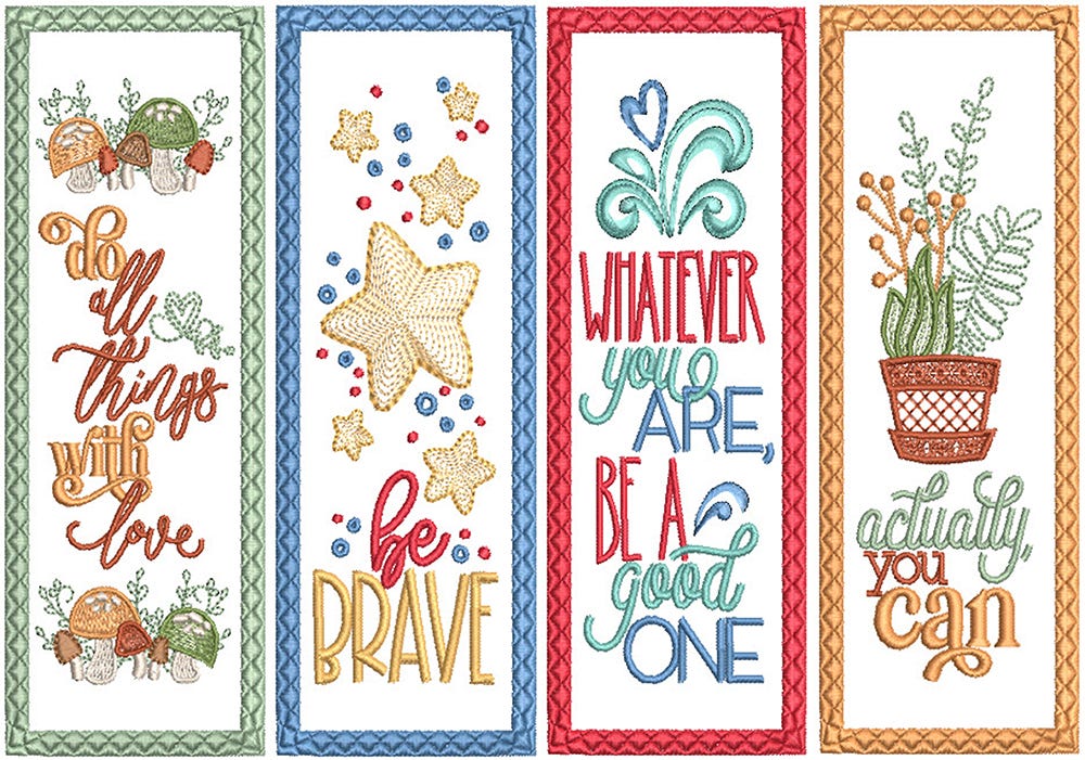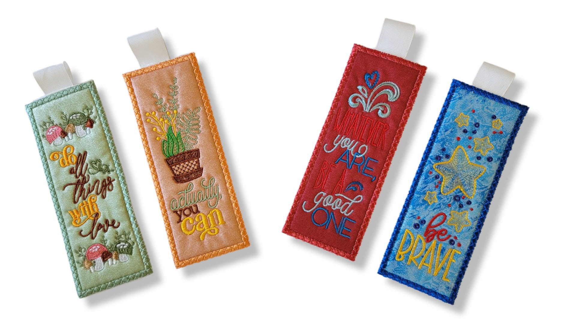 Receive extra daily encouragement with our bookmarks! Coordinate the fabric on the back of each bookmark with the colors of the detailed embroidery to create unique and memorable bookmarks! The embroidered details feature bean stitch, satin stitch and fill stitch elements. Available in 3 sizes in each of the four designs.